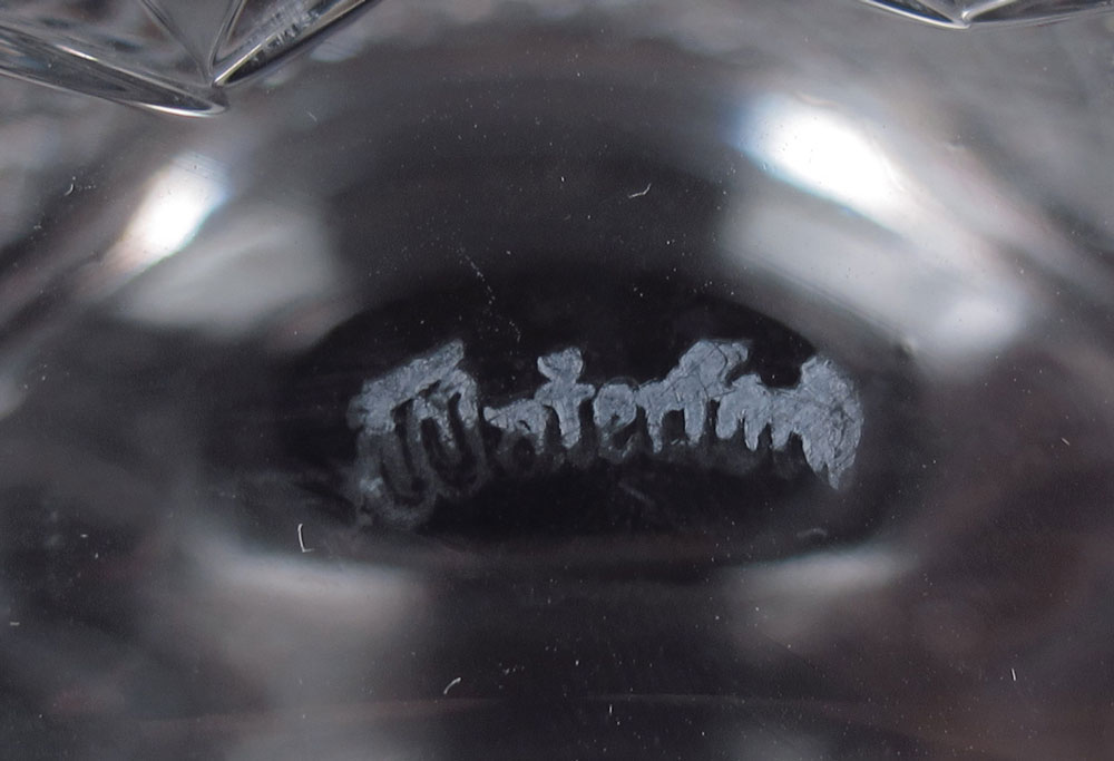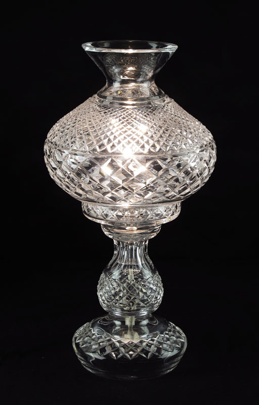 WATERFORD HURRICANE LAMP: Overall 14'' x 7 1/2''.