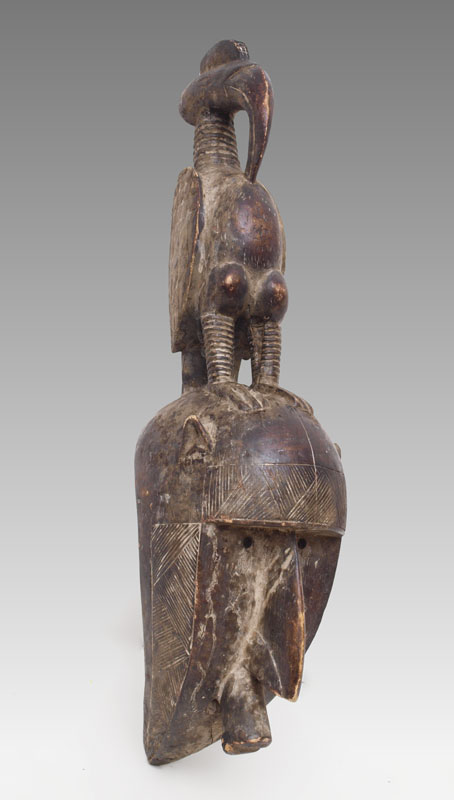 CARVED AFRICAN BAMBARA INITIATION MASK MALI: 27'' x 7'' x 9''