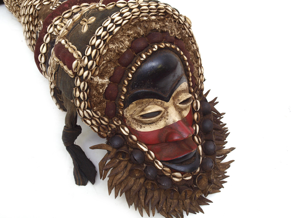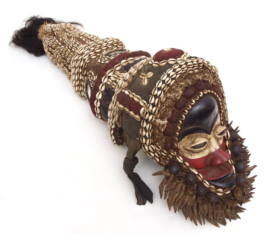 CARVED AFRICAN GURE WOBE CEREMONIAL MASK LIBERIA: 39'' x 12'' x 11''