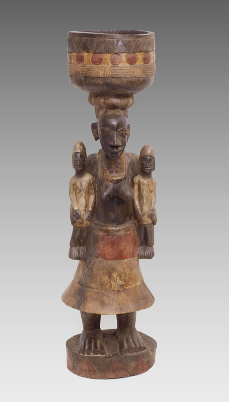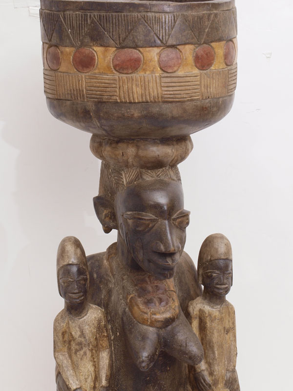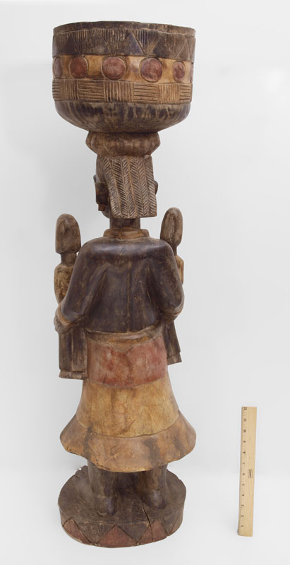 CARVED AFRICAN YORUBA OFFERING BOWL NIGERIA: 42'' x 11 1/2'' x 10 1/2''
