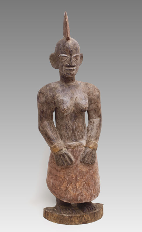 CARVED AFRICAN YORUBA ANCESTRAL FIGURE NIGERIA: 41 1/2'' x 15 1/2'' x 7''
