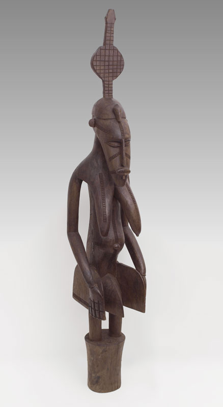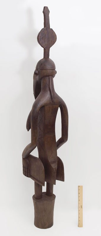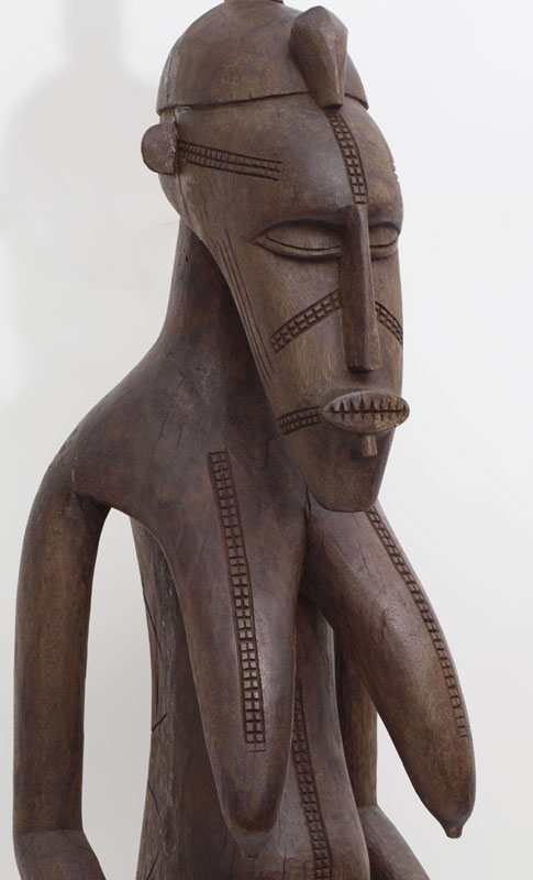 CARVED AFRICAN SENUFO PORO FIGURE IVORY COAST: 57 1/2'' x 10 3/4'' x 11''