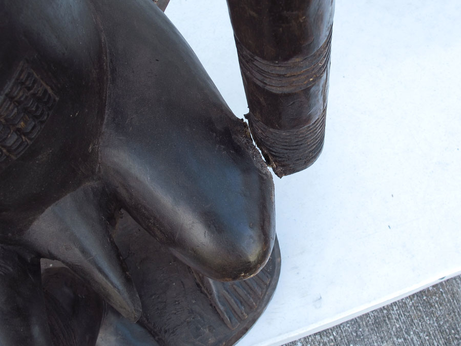 CONDITION: Fresh break in left arm. Note all items from this estate have been recently fumigated, may have natural imperfections or old repairs, old termite damage and age cracks.