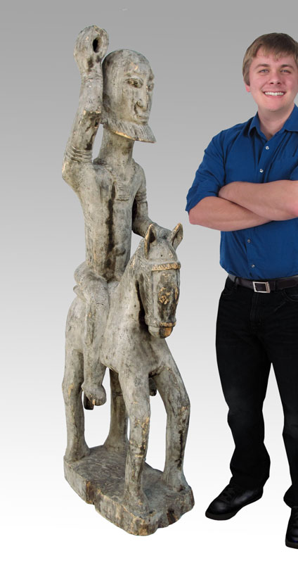 CARVED AFRICAN DOGON HORSEMAN: 80'' x 15'' x 24''