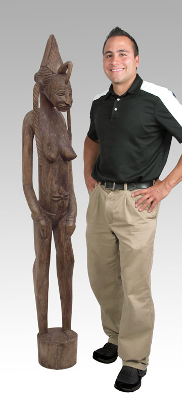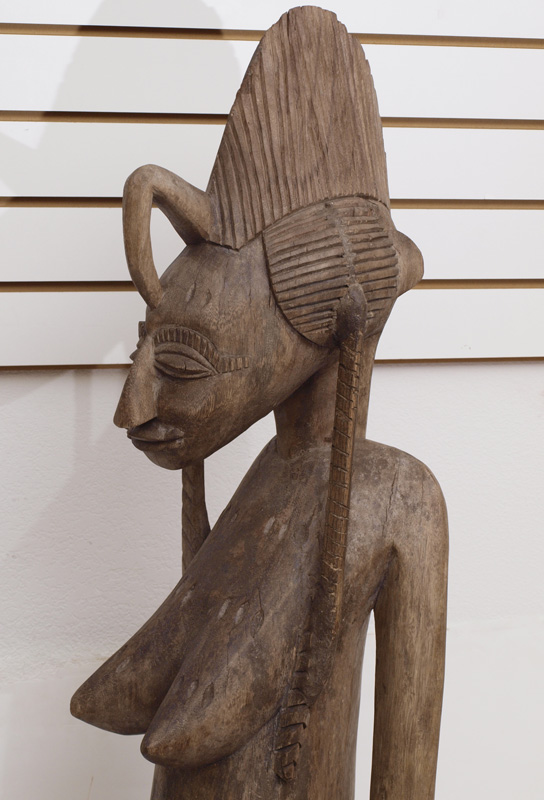 CARVED AFRICAN SUNUFO MATERNITY FIGURE: 63 1/2'' x 10 1/2'' x 11''