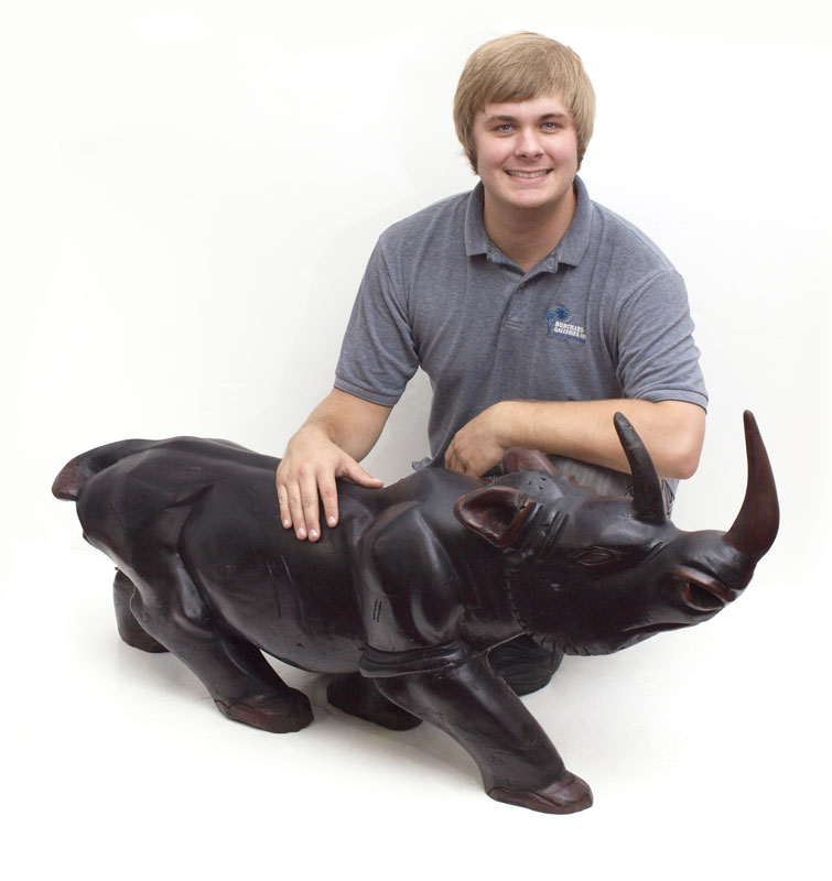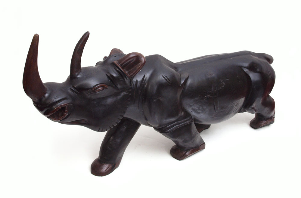 CARVED AFRICAN MAHOGANY CARVED RHINO GUINEA: 25''h x 49 1/2''l x 10''w