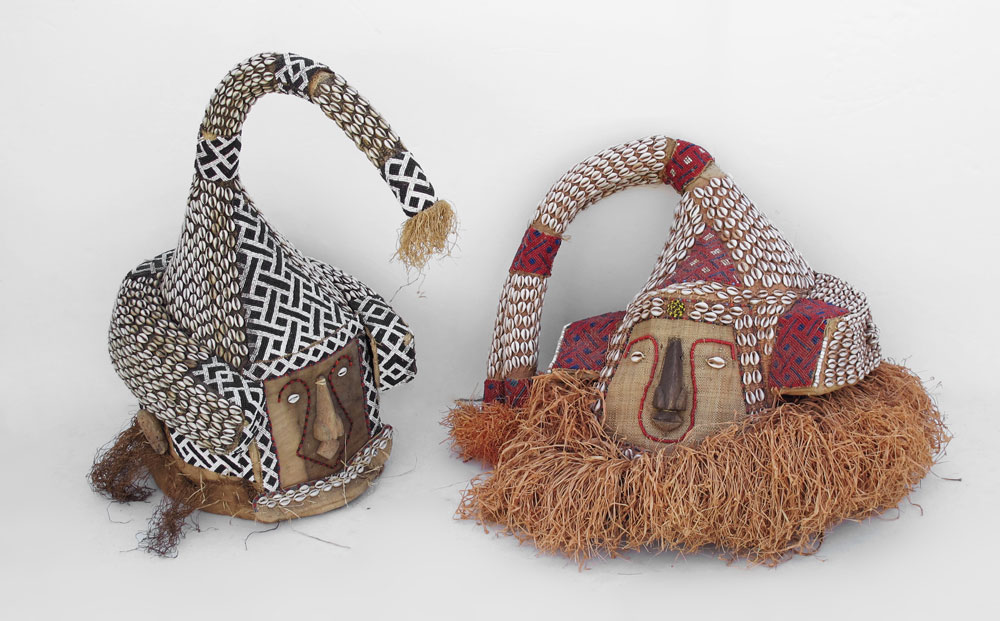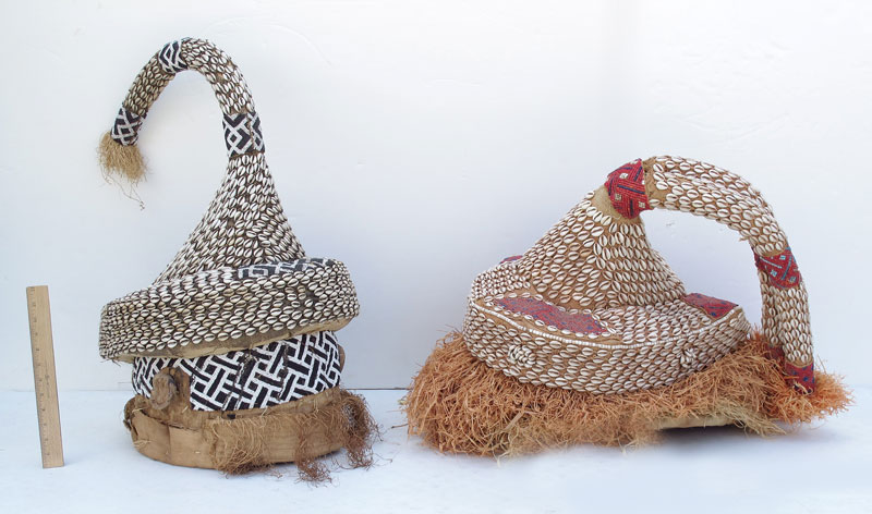 2 CARVED AFRICAN KUBA CONGO HELMET MASK: 27'' x 16 1/2'' x 23'' and 26'' x 14'' x 20 1/2''