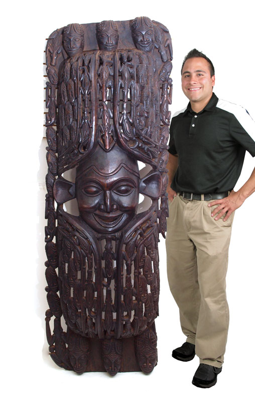 CARVED AFRICAN BAMILIEKE SHIELD: 80'' x 29'' x 11''