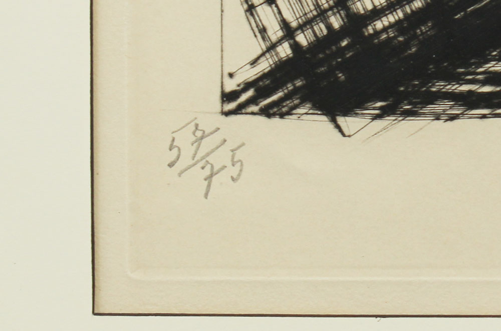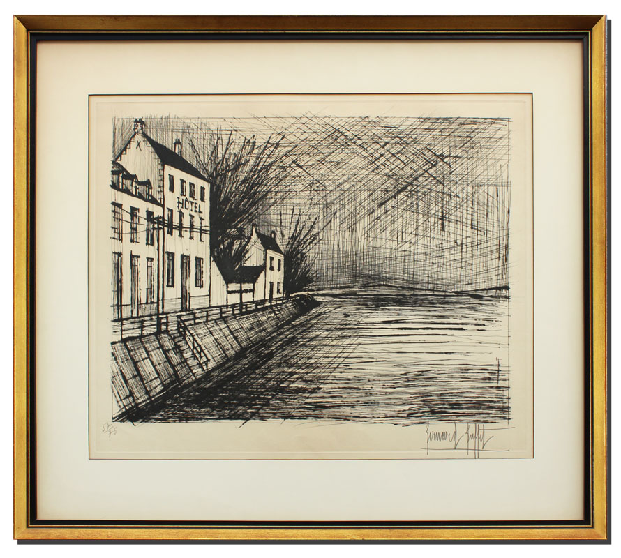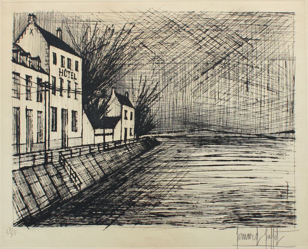 BUFFET, Bernard, (French, 1928-): Hotel Am Kanal, Etching, sight size 20'' x 25 3/4'', pencil signed lower right, numbered lower left 57/75, framed, 29'' x 34''.