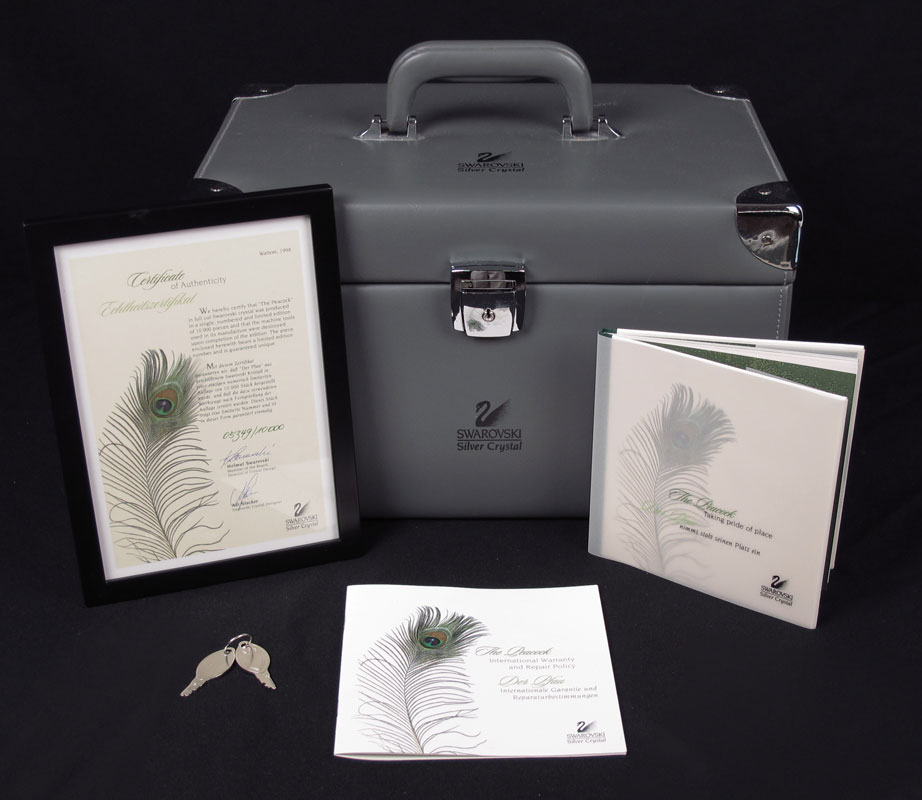 SWAROVSKI CRYSTAL LIMITED EDITION 1998 PEACOCK: #5,349 of 10,000, Adi Stocker, 7607 000 002. With box and certificate.