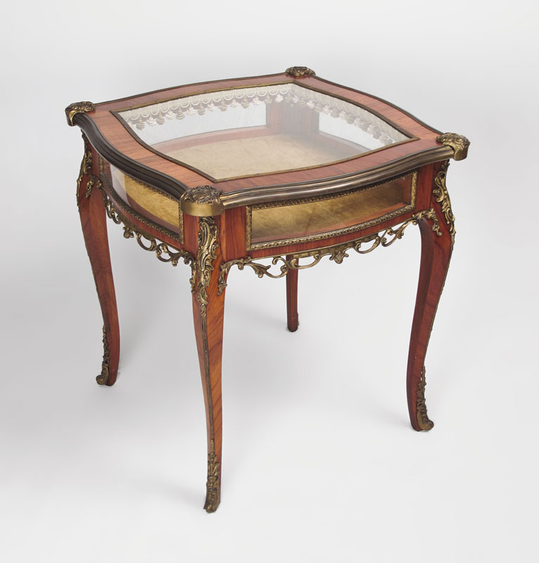 ITALIAN ORMOLU VITRINE TABLE IN THE MANNER OF FRANCOIS LINKE. Circa 20th century, 26 1/2'' x 25 3/4'' square.