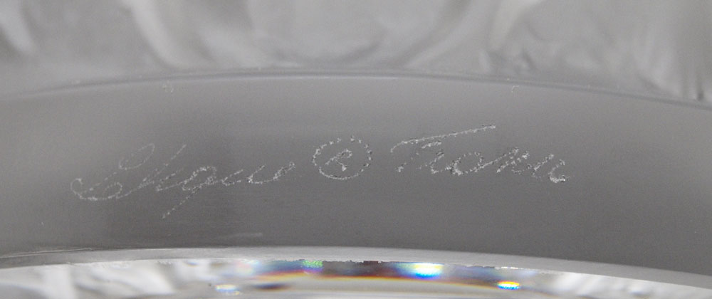 LALIQUE CRYSTAL BACCHANTES VASE: Featuring 10 nude figures. Approx. 9 1/2''h., 8'' dia. Signed Lalique France.