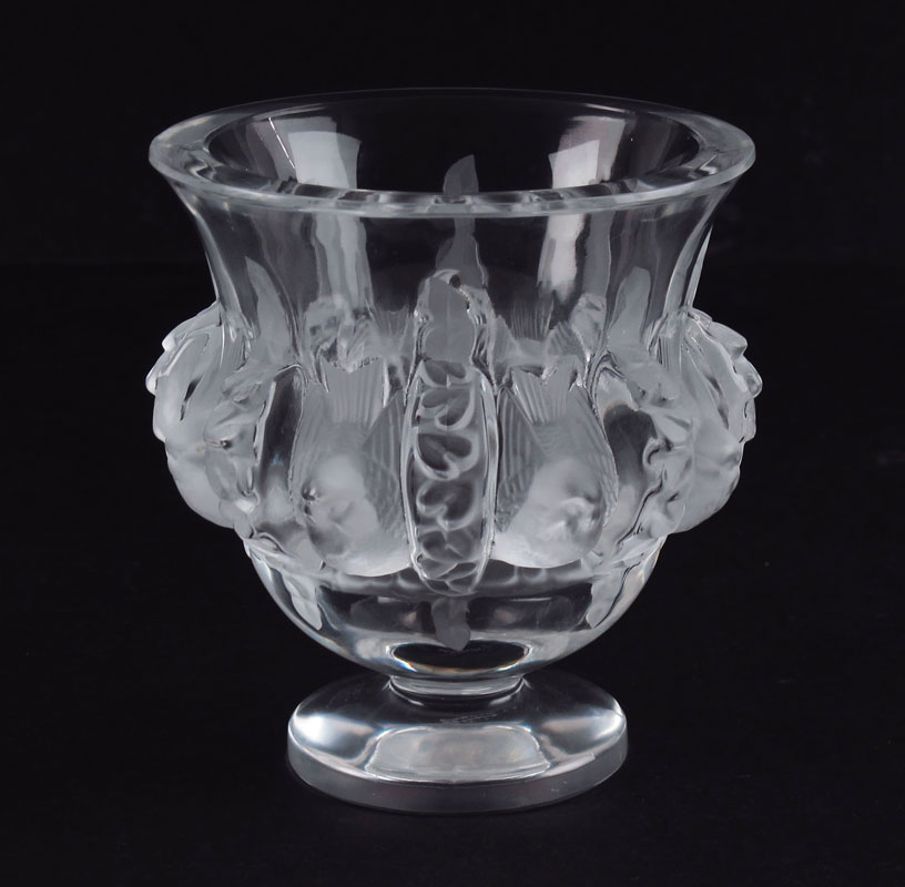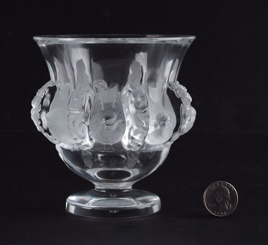 LALIQUE FRENCH CRYSTAL DAMPIERRE VASE: Etched Lalique signature. 4 3/4'' h. x 4 1/2''.