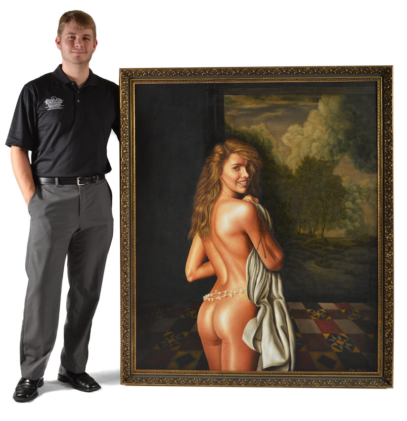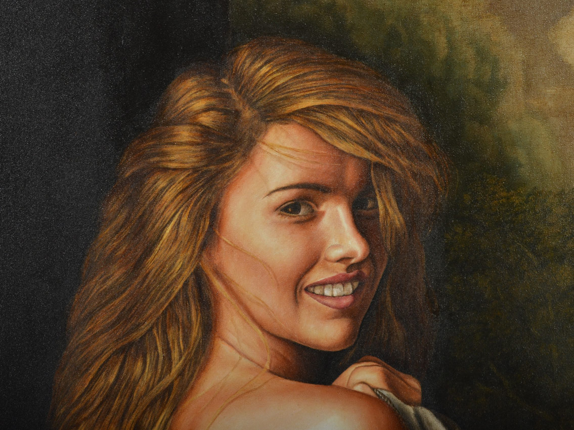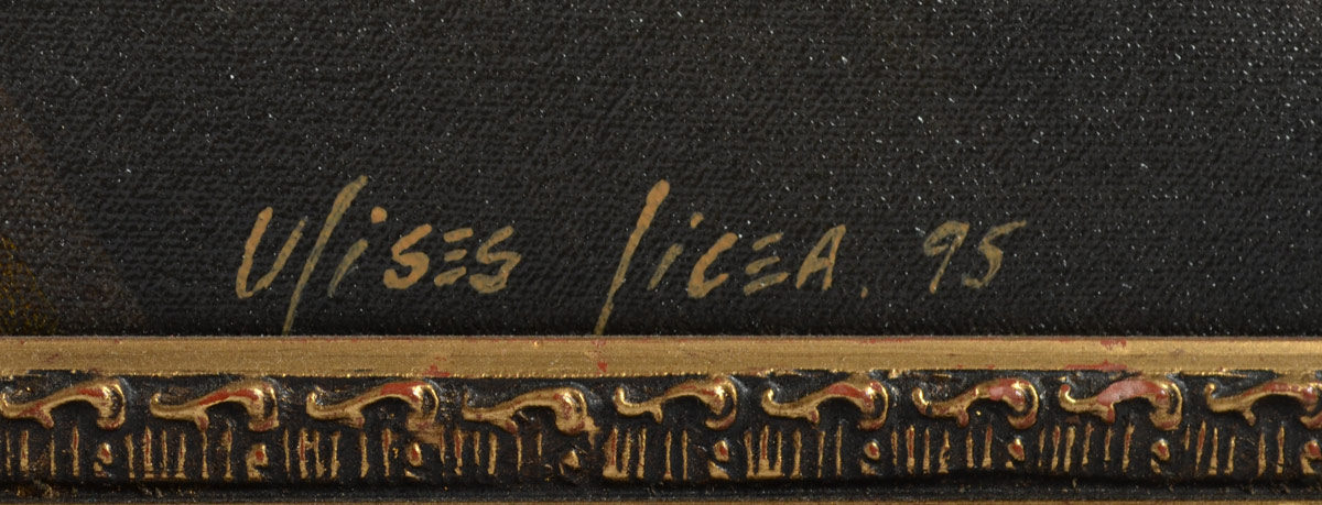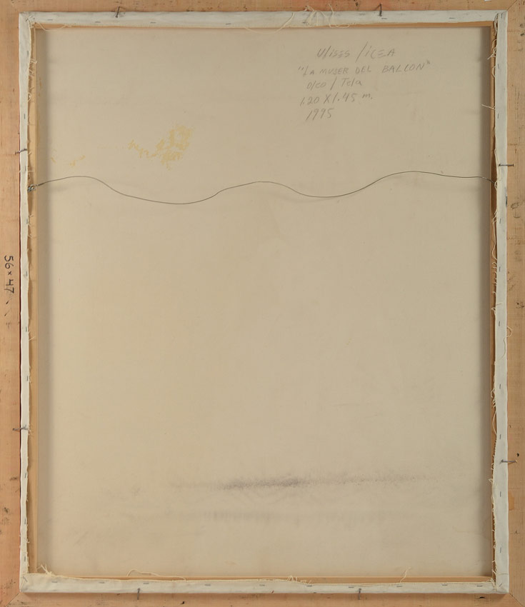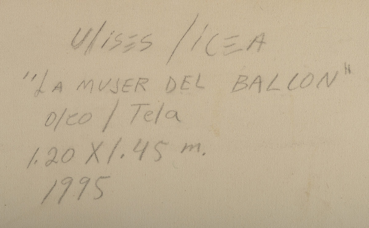LICEA, Ulises, (Mexican, 20th Century): ''La Mujer de Balcon'', Oil/Canvas, 56'' x 47'', signed lower right, dated '95, signed titled and dated verso, framed 61 1/2'' x 52 1/2''.