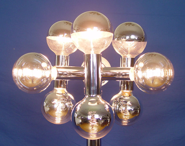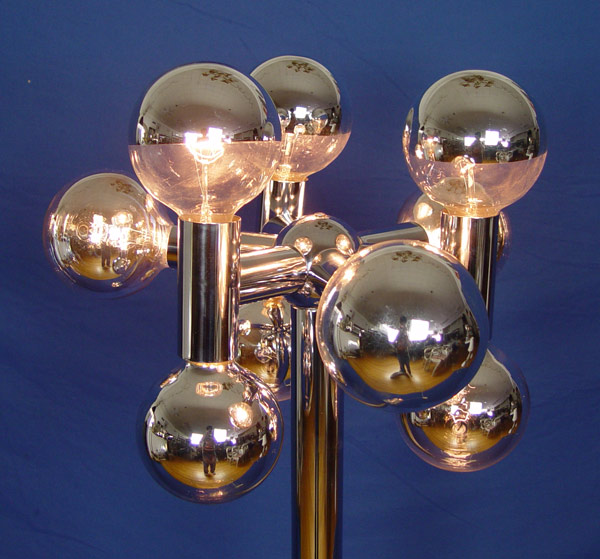 ROBERT SONNEMAN CHROME MODERN FLOOR LAMP: Unique moderne lamp with 9 sockets on 6 arms by Robert Sonneman. Measures 50 1/2'' h. x 11'' base dia.