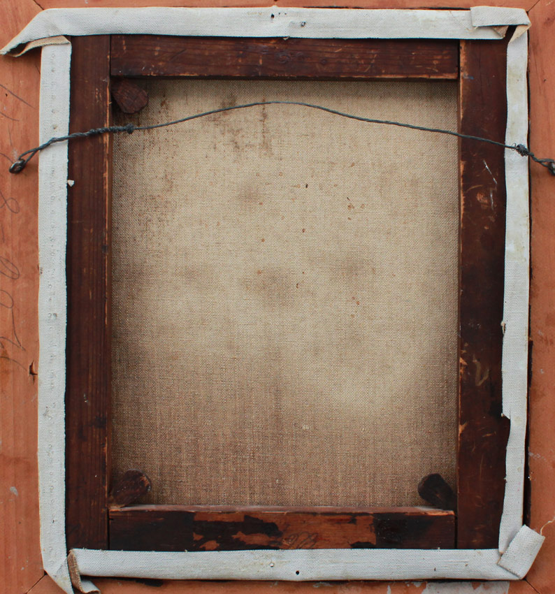 CONDITION: Has been relined, visible repairs to tears, sporadic spots of missing paint, needs cleaning.