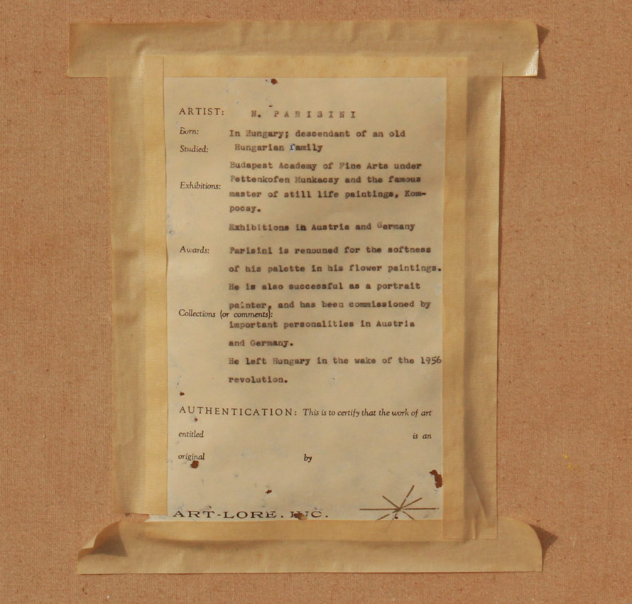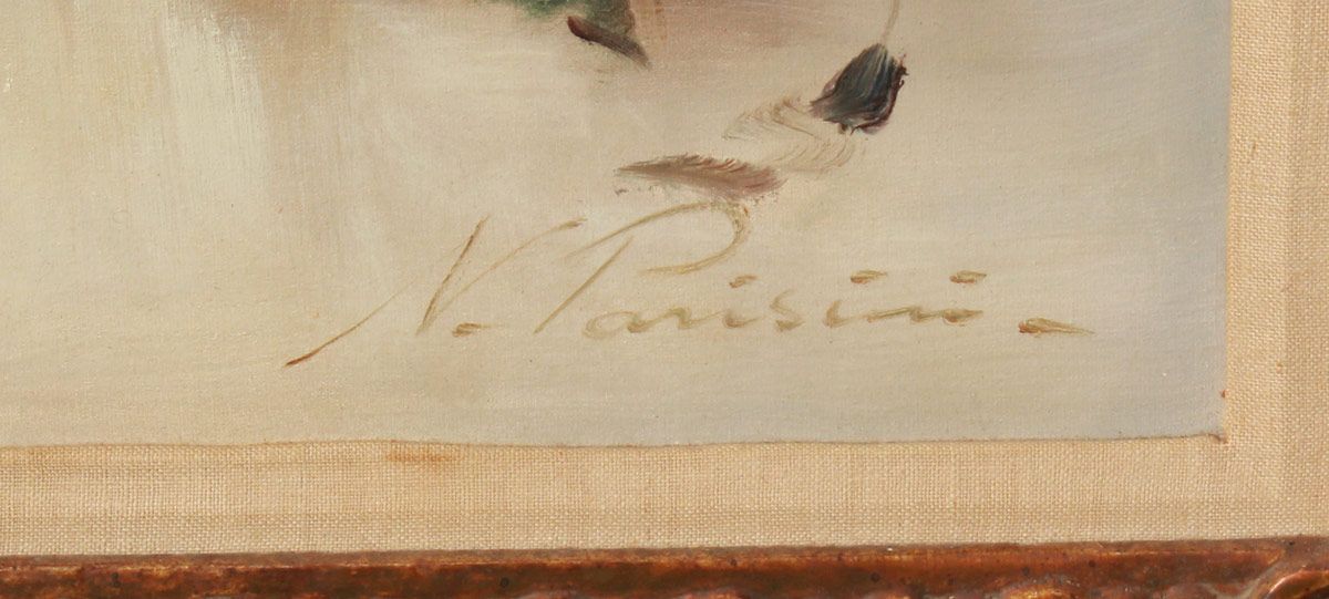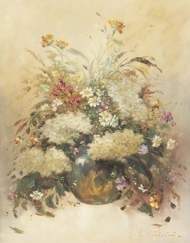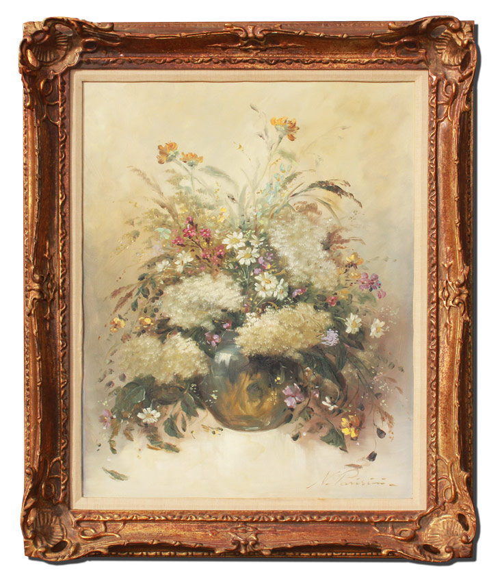 PARISINI, N., (Hungarian, 20th Century): Floral Still Life, Oil/Canvas, 30'' x 24'', signed lower right, encased in elaborate pierced carved and gilded frame, 38'' x 32''.