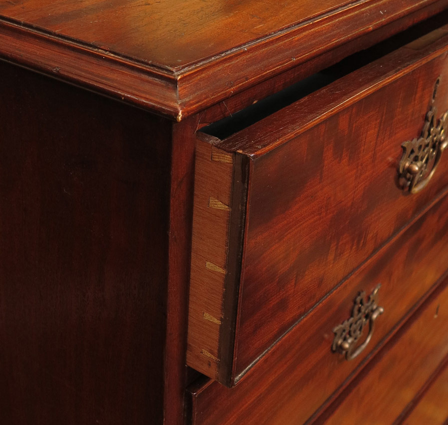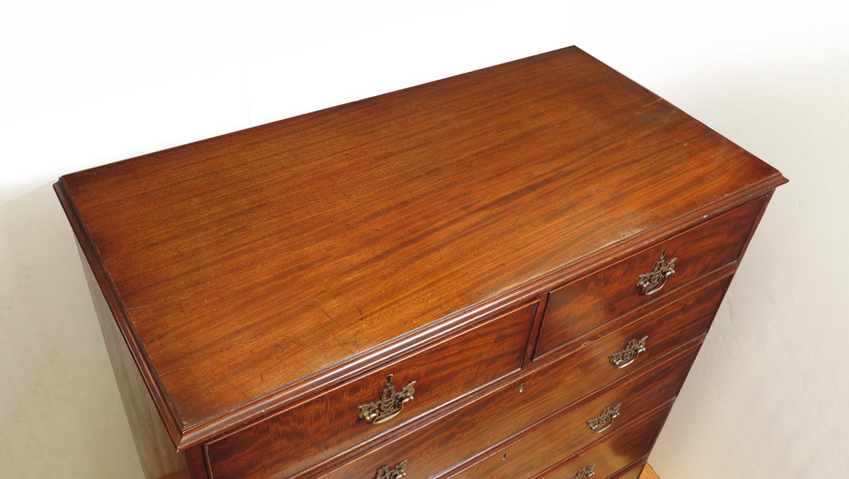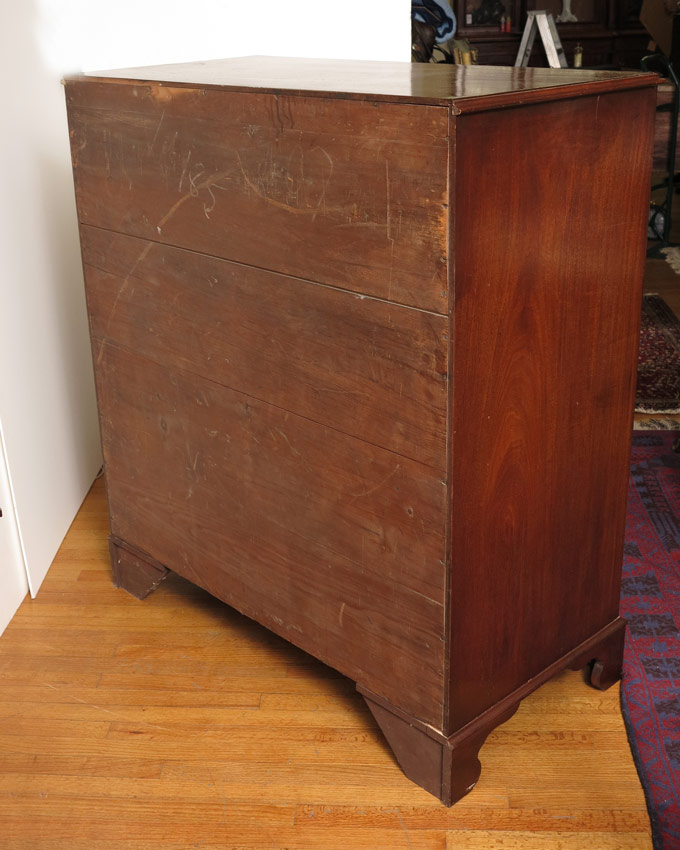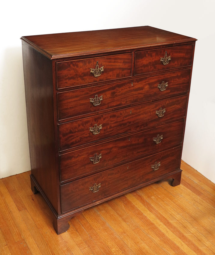 19TH CENTURY MAHOGANY CHEST OF DRAWERS: 2 half drawers over 4 graduated full length drawers. Each drawer lined with blue paper. 51'' h. x 45'' x 22 1/2''.