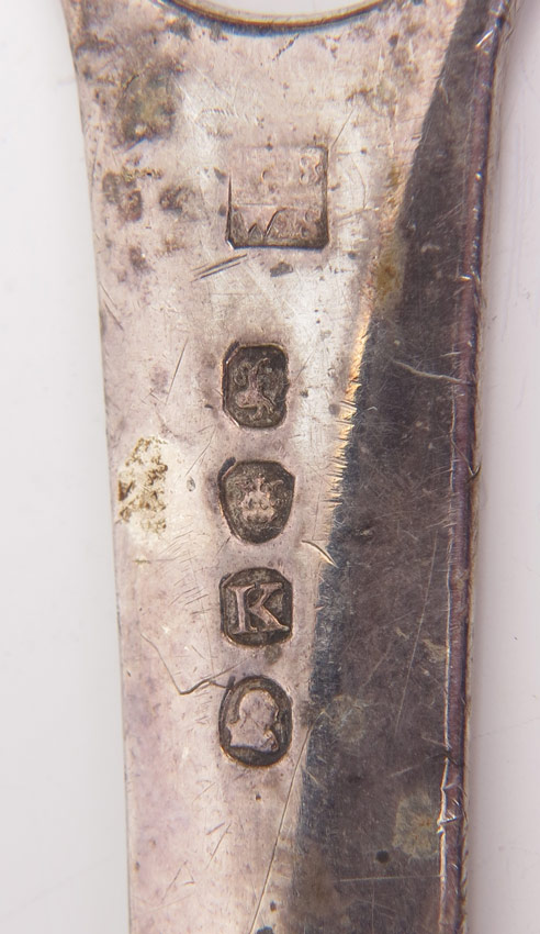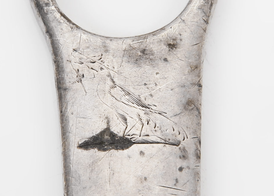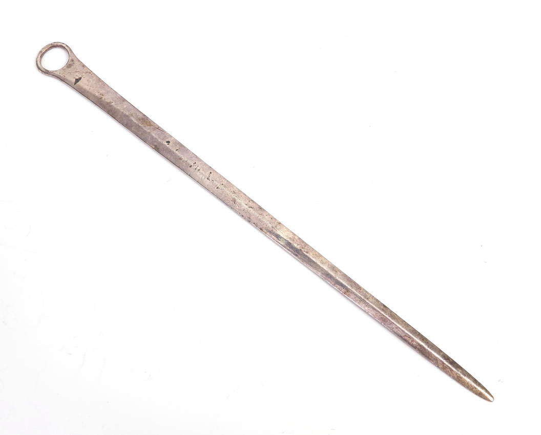 1805 PETER & WILLIAM BATEMAN ENGLISH SILVER MEAT SKEWER: Hallmarked PB over WB for Peter and William Bateman, 1805 date mark. Engraved eagle near ring handle. 12'' l., approx. 2.5 troy oz.
