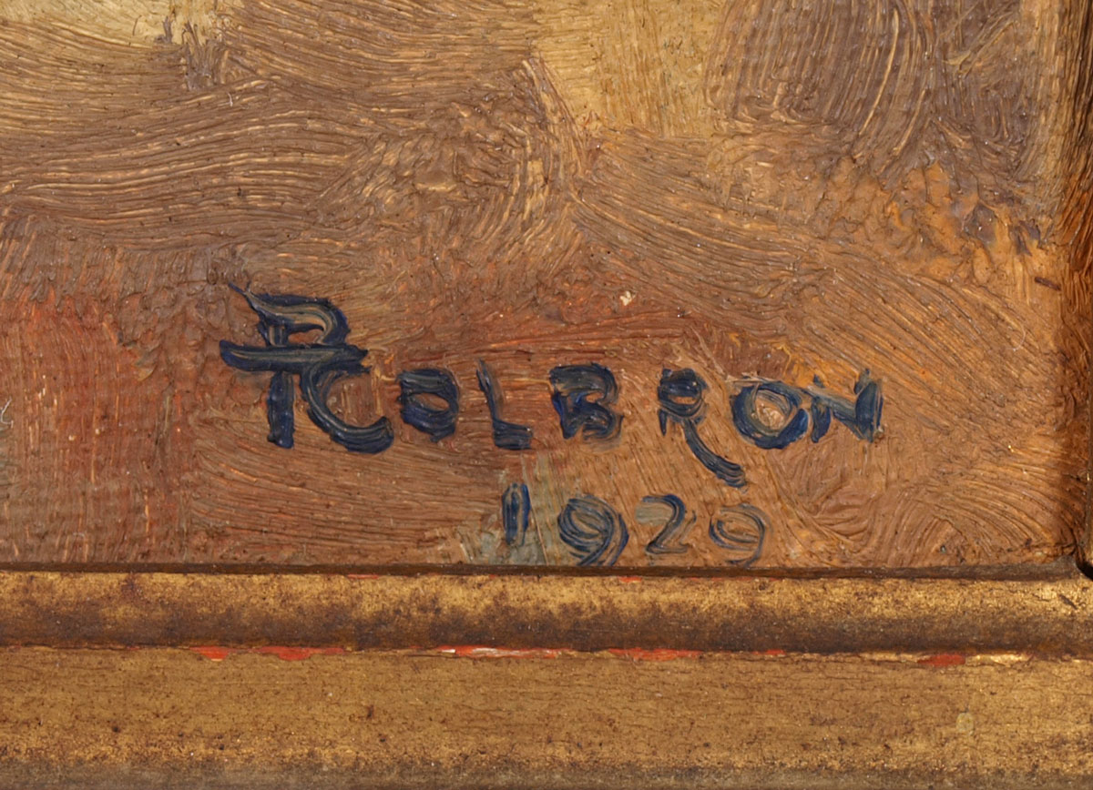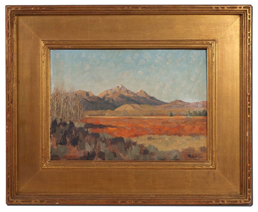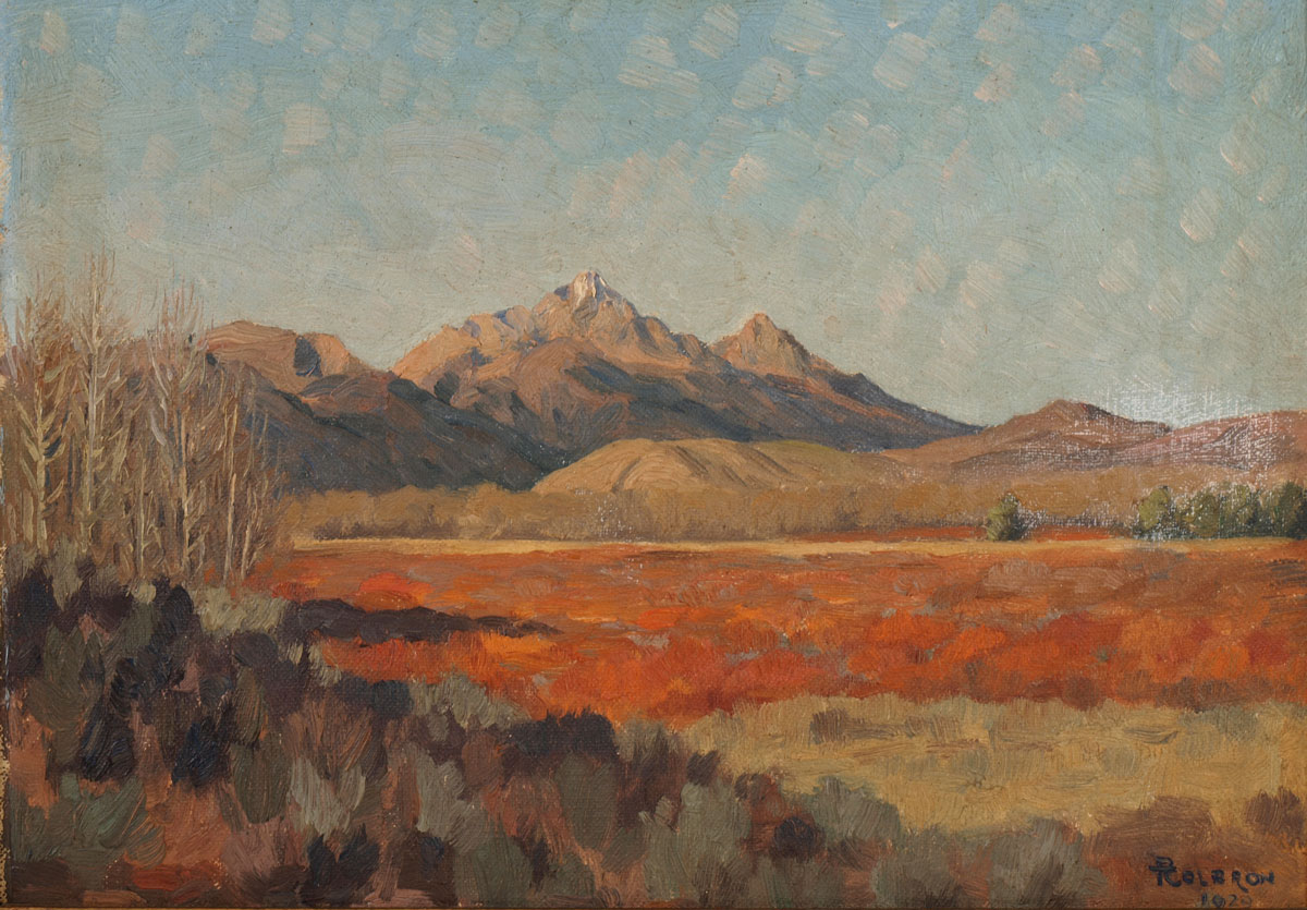 COLBRON, Paul, (American, 1902-1952): ''Teton's from JY Ranch, 22 Oct, '29, Oil/Canvasboard, 10'' x 14'', signed and dated lower right, titled and dated verso, carved period impressionist frame with minor wear, 17'' x 21'',