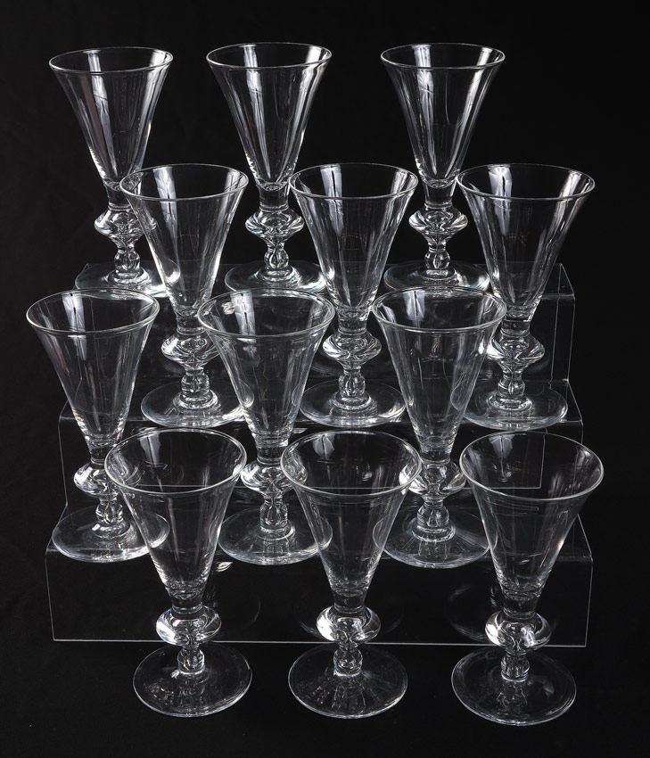 12 PIECE SET OF STEUBEN CRYSTAL STEMS: Each 7 7/8''. Signed.