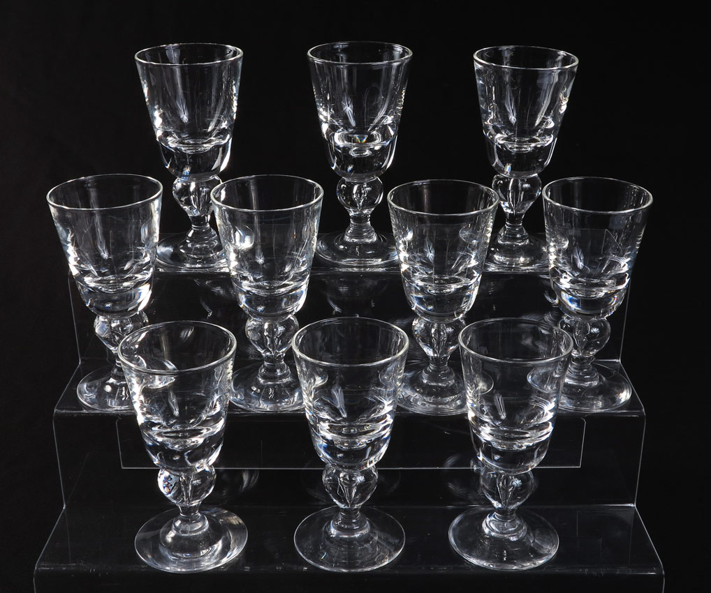 10 PIECE SET OF STEUBEN CRYSTAL STEMS: Each 5 3/4''. Signed.