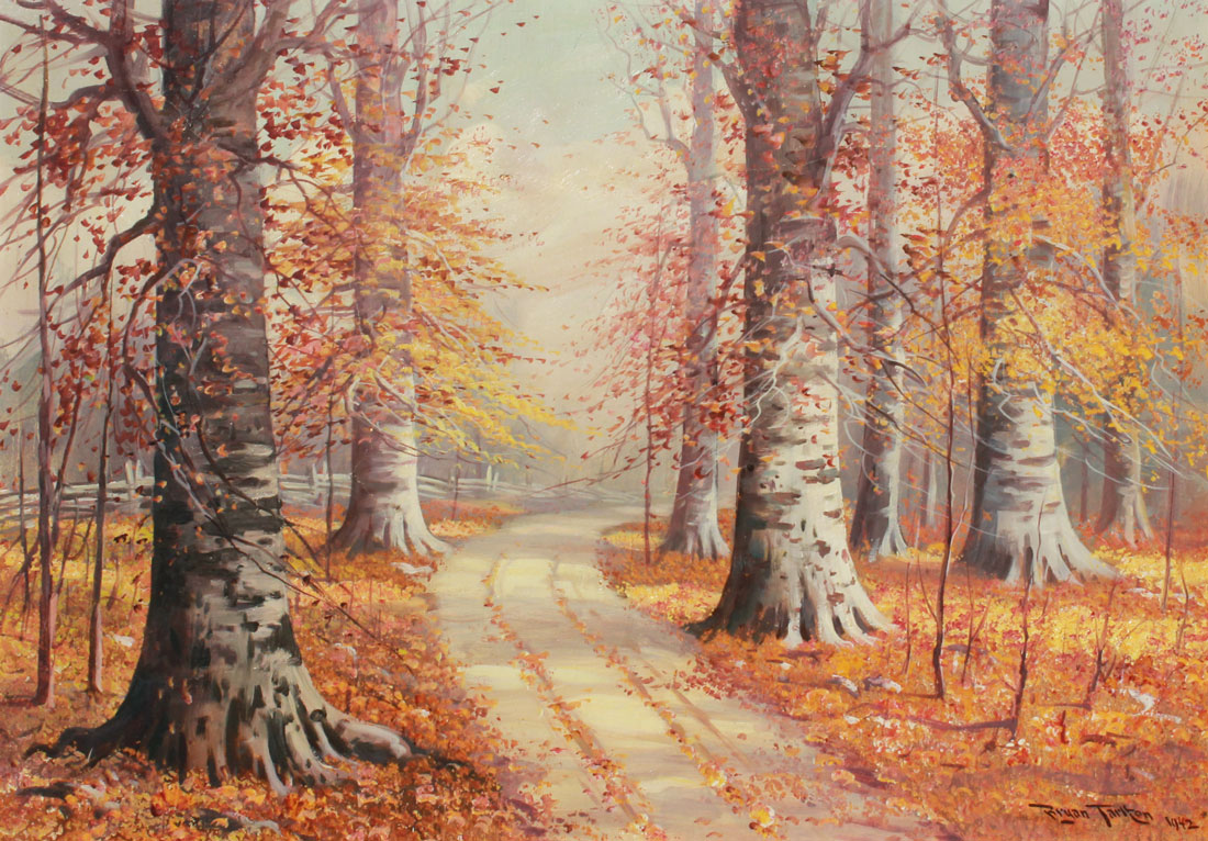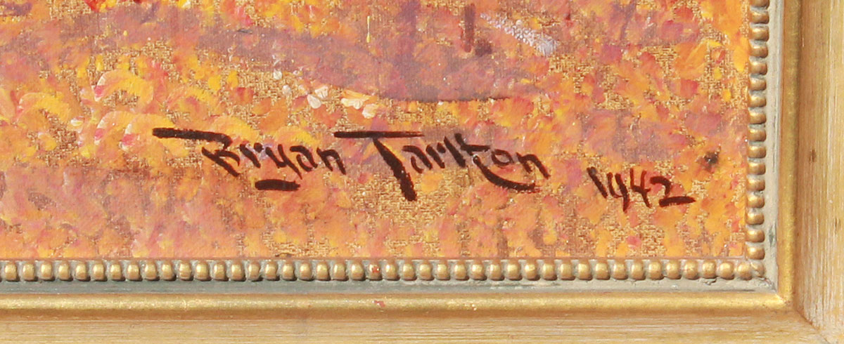 TARLTON, Bryan, (American, 1899-1962): Autumnal Birchwood Trail, Oil/Canvas laid down on board, 24'' x 34'', signed lower right and dated 1942, gold frame with minor wear 29'' x 39 1/2''.
