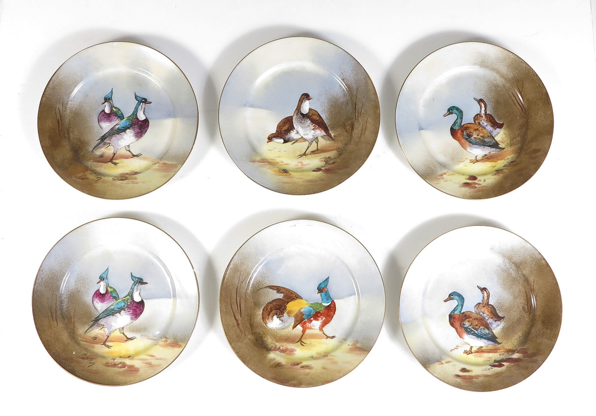 6 LIMOGES HAND PAINTED GAME PLATES: 6 plates with 4 different types of game birds, each plate marked ''Comte D'Artois Limoges France. 10 1/2'' dia.