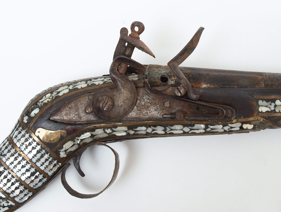 CONDITION: Areas of inlay loss, decorative example. Burchard Galleries does not condone the attempt to fire any antique firearm.