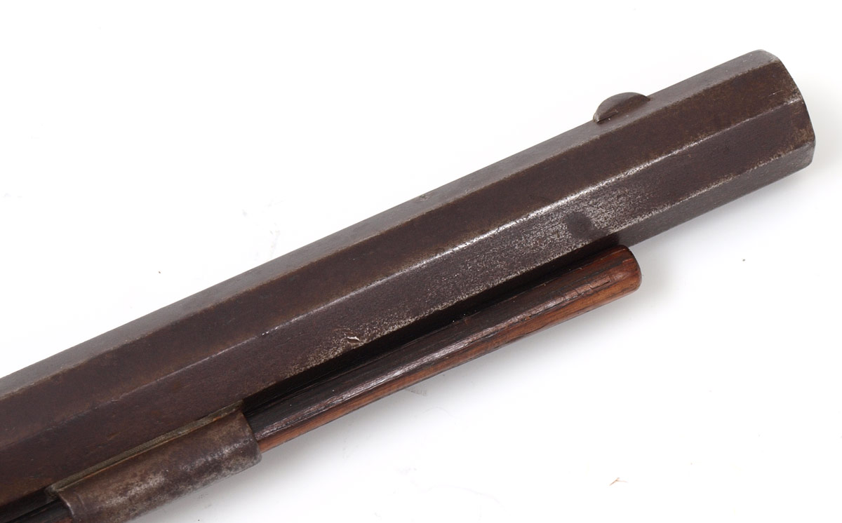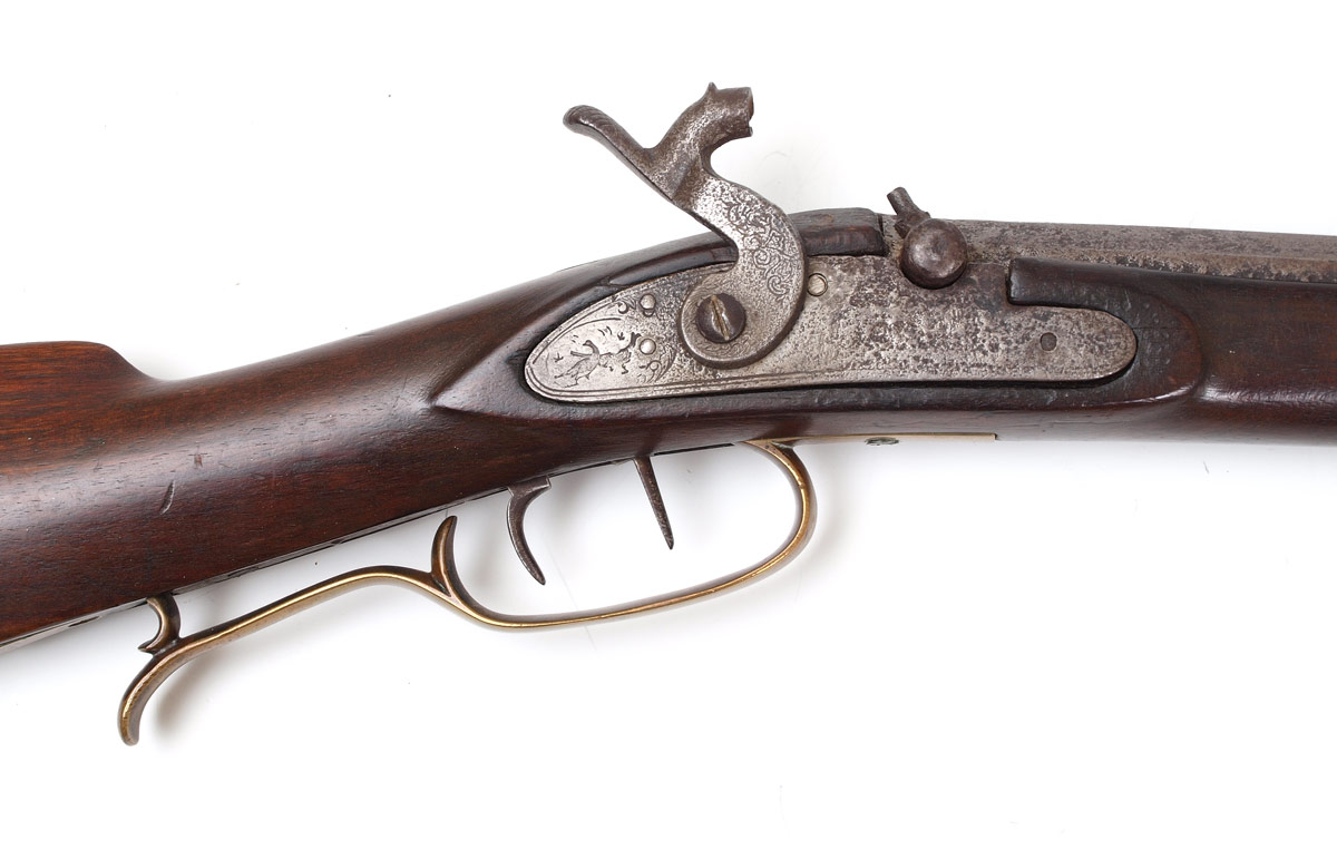 CONDITION: Note crack in butt stock, pitting at nipple, lock and barrel. Burchard Galleries does not condone the attempt to fire any antique firearm.