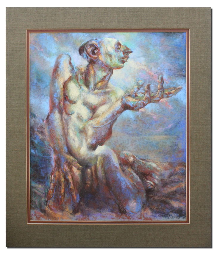 ANDERSON, David, (American, 20th Century): Grotesque Nude Kneeling Pleading Man, Pastel, Sight size 24'' x 20 1/4'', signed upper left, dated '79, unframed.