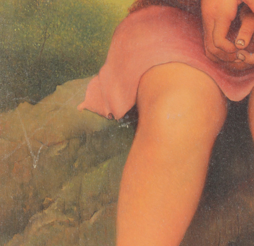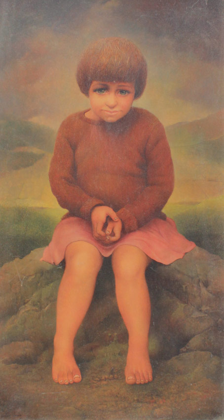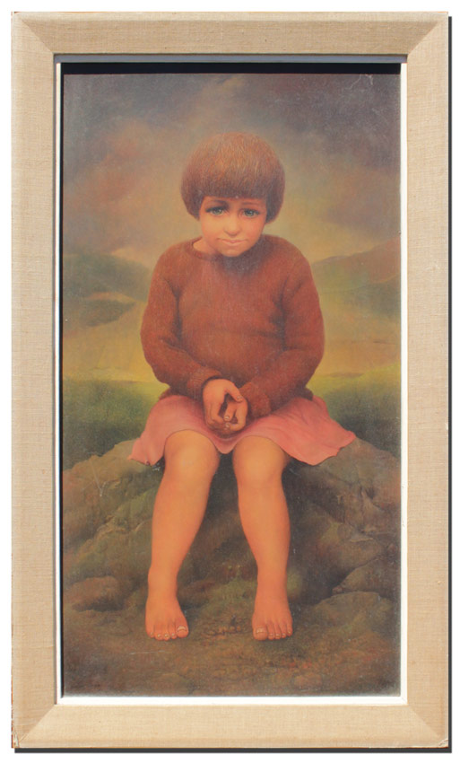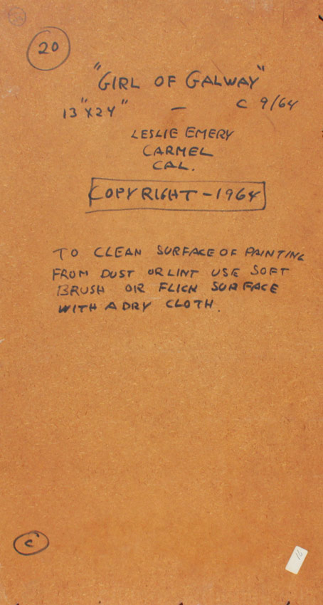 EMERY, Leslie, (American, 1912-1998): Girl of Galway, Painting/Masonite, signed lower left, also signed titled and dated 1964 verso, measures 24'' x 13'', no frame, encased in fabric liner, 27 1/4'' x 16''.