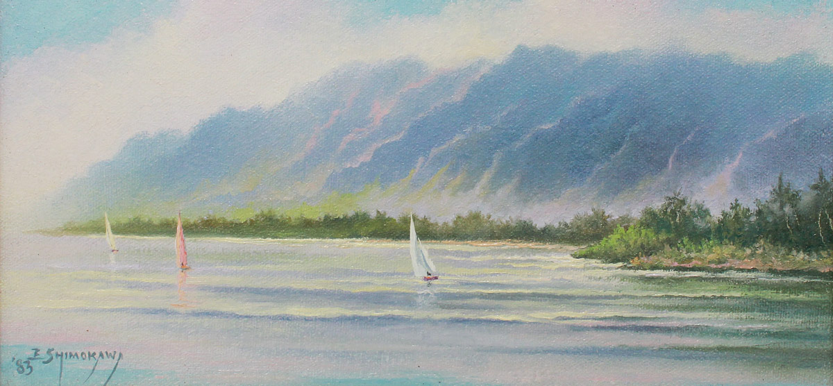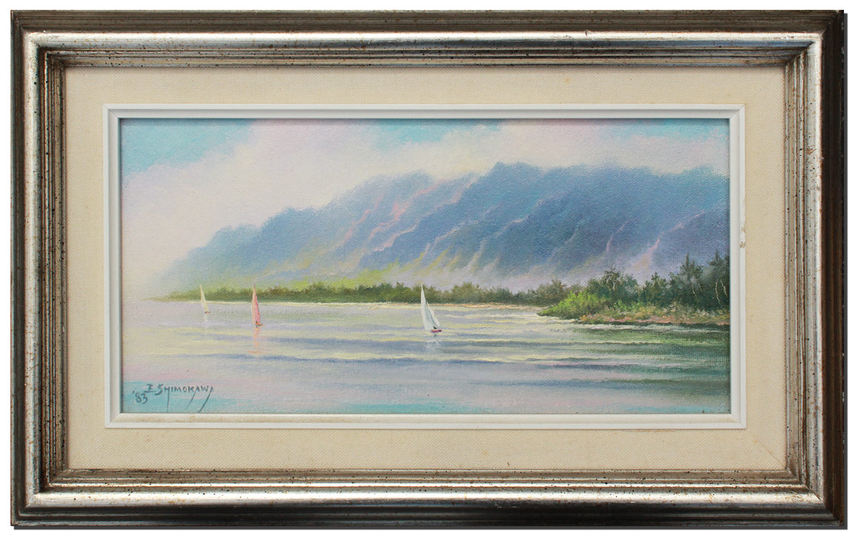 SHIMOKAWA, Earl, (American, 20th Century): North Oahu Sails, Oil/Canvas, 6'' x 12'', signed lower left, dated '83, signed titled verso, framed 9 3/4'' x 15 3/4''.