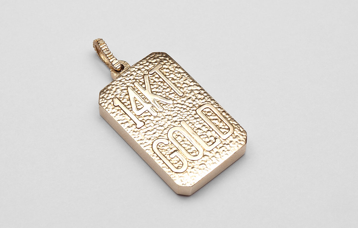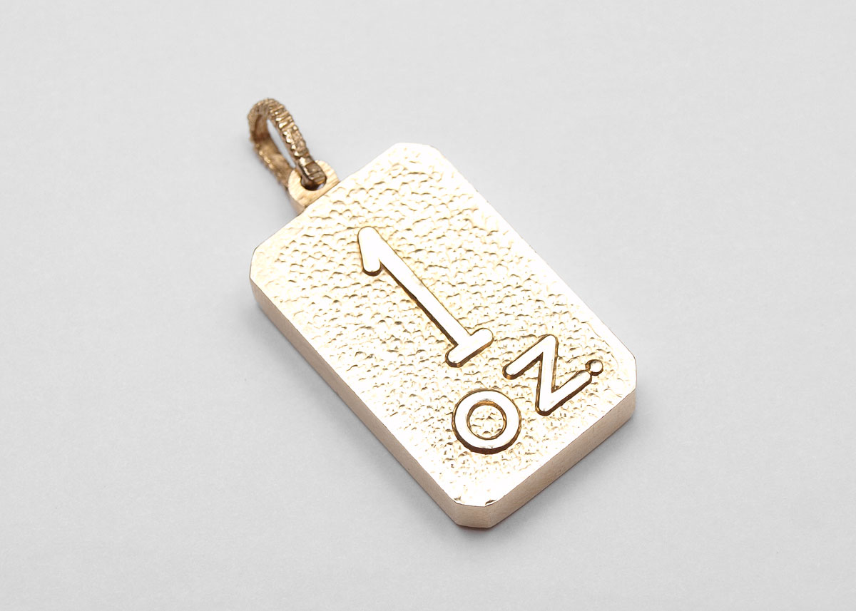 1 OZ GOLD INGOT PENDANT: Assayed at 14KT. Measures 1'' x 3/4''.