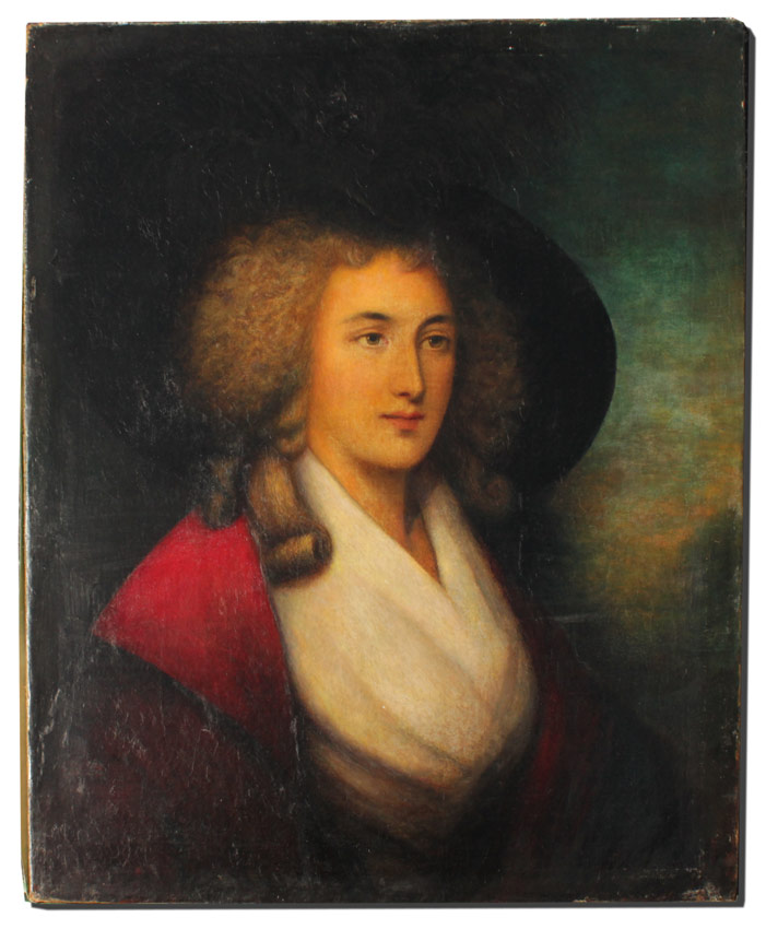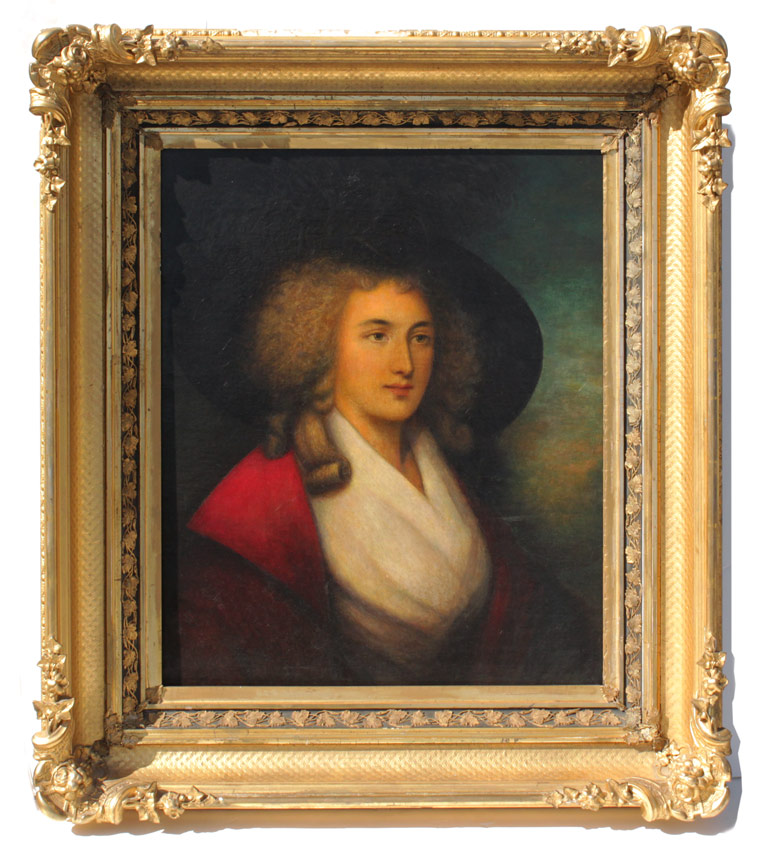 GOOD 19TH CENTURY PORTRAIT PAINTING OF A LADY: Oil/Canvas, 30'' x 25'', encased in elaborate gilded and carved gesso frame with floral motif, considerable wear and missing gesso, 40'' x 45'', 4 1/2'' deep, the painting has no visible signature.