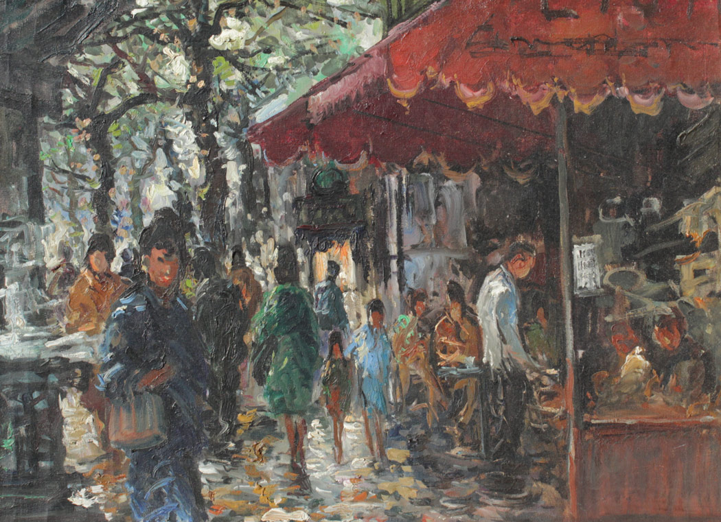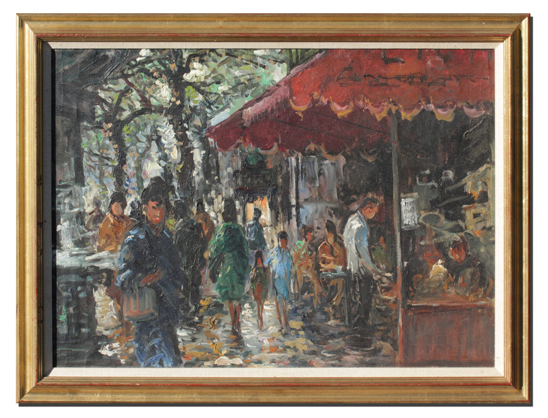 FREELAND, Cliff, (American, 20th C): Market Scene, OIL/C, 20'' x 28'', signed and framed, 24'' x 32''.