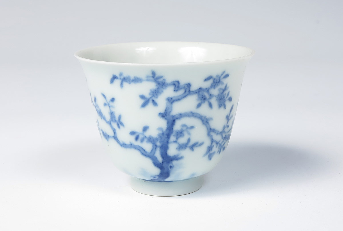 CHINESE PORCELAIN WINE CUP: Image of a cherry tree. Approx. 2'' tall x 2 1/4'' dia. Actual age unknown.
