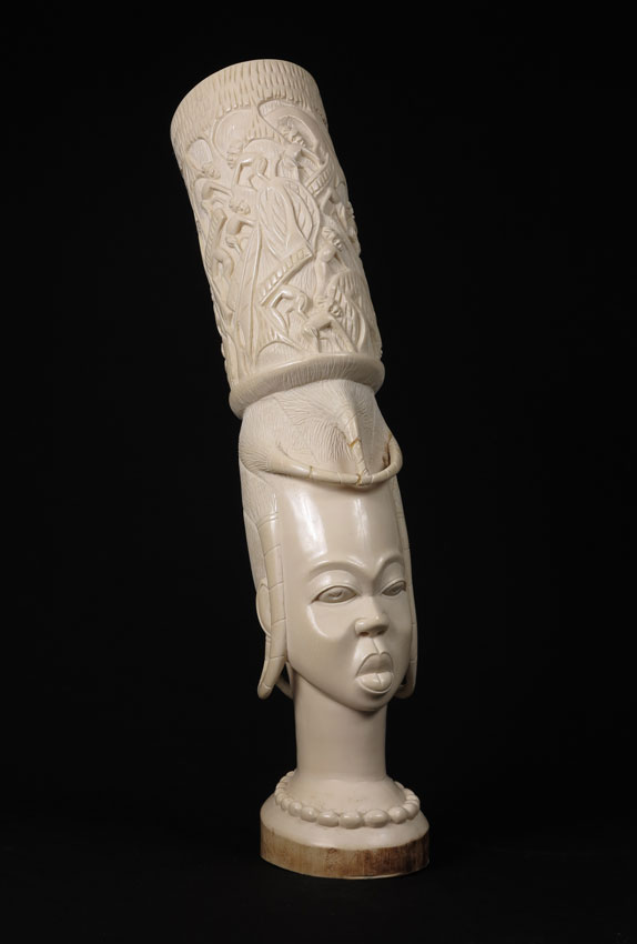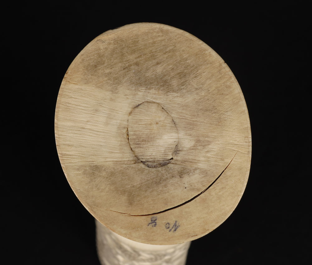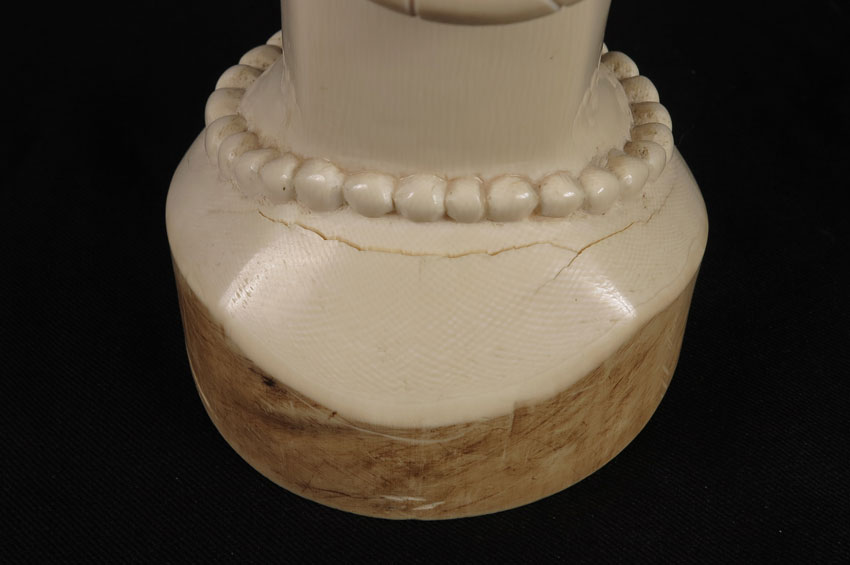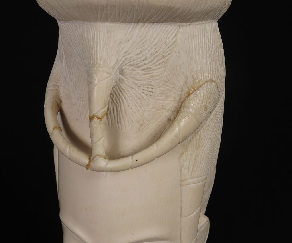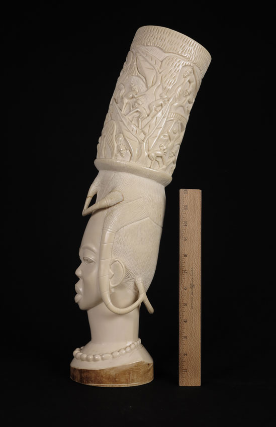 CONDITION: Note repair to hair section on front, age crack on top of base. Shipping outside of the U.S. is not permitted on this lot. CITES paperwork is not available.