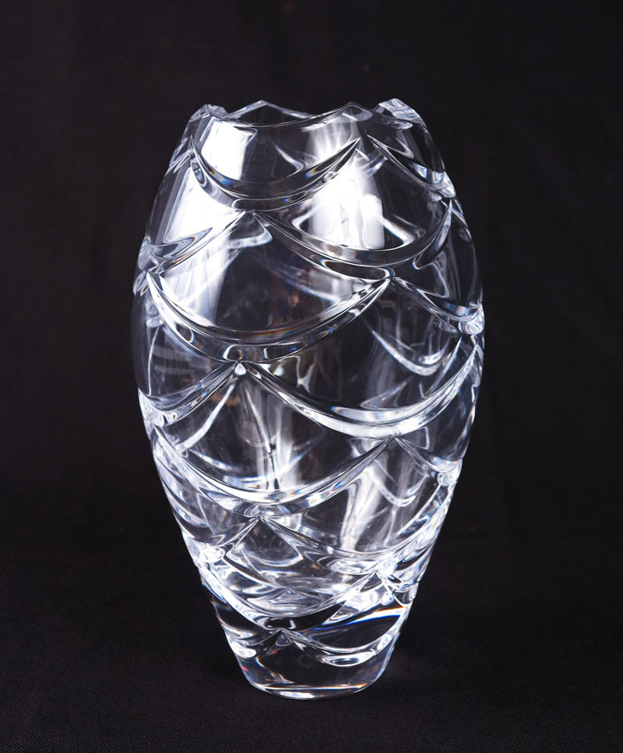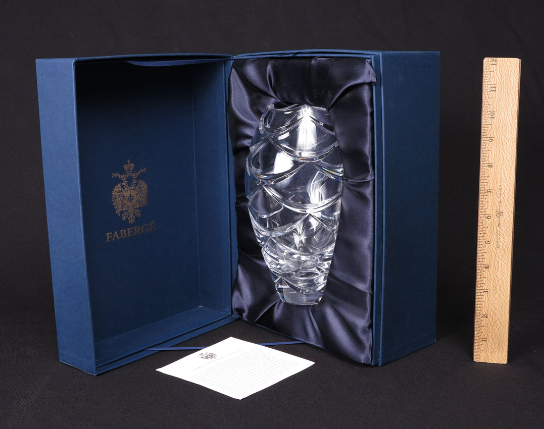 FABERGE ''PINE CONE'' CRYSTAL VASE: 8 1/2'' h. Sold with original box, 6 3/8'' h. x 12 1/4'' x 8 1/2''