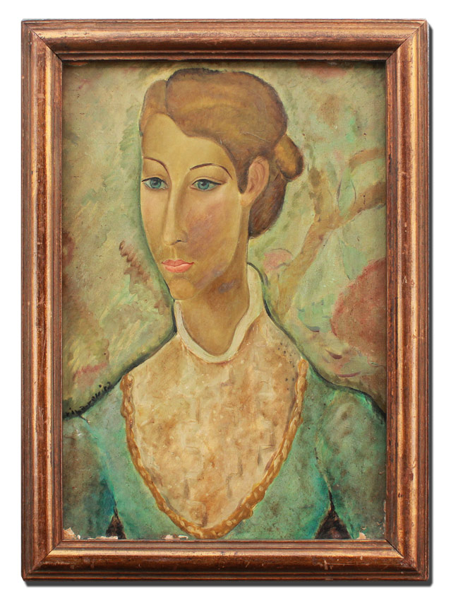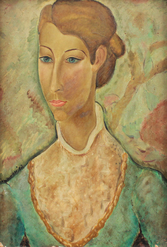 ROVIRA, Francois Riba, (Spanish, 1913- ): Portrait of a Young Lady, Oil/Masonite, 21 3/4'' x 14 3/4'', signed in the left margin, encased in a worn gilded frame, 24 1/2'' x 17 3/4''.
