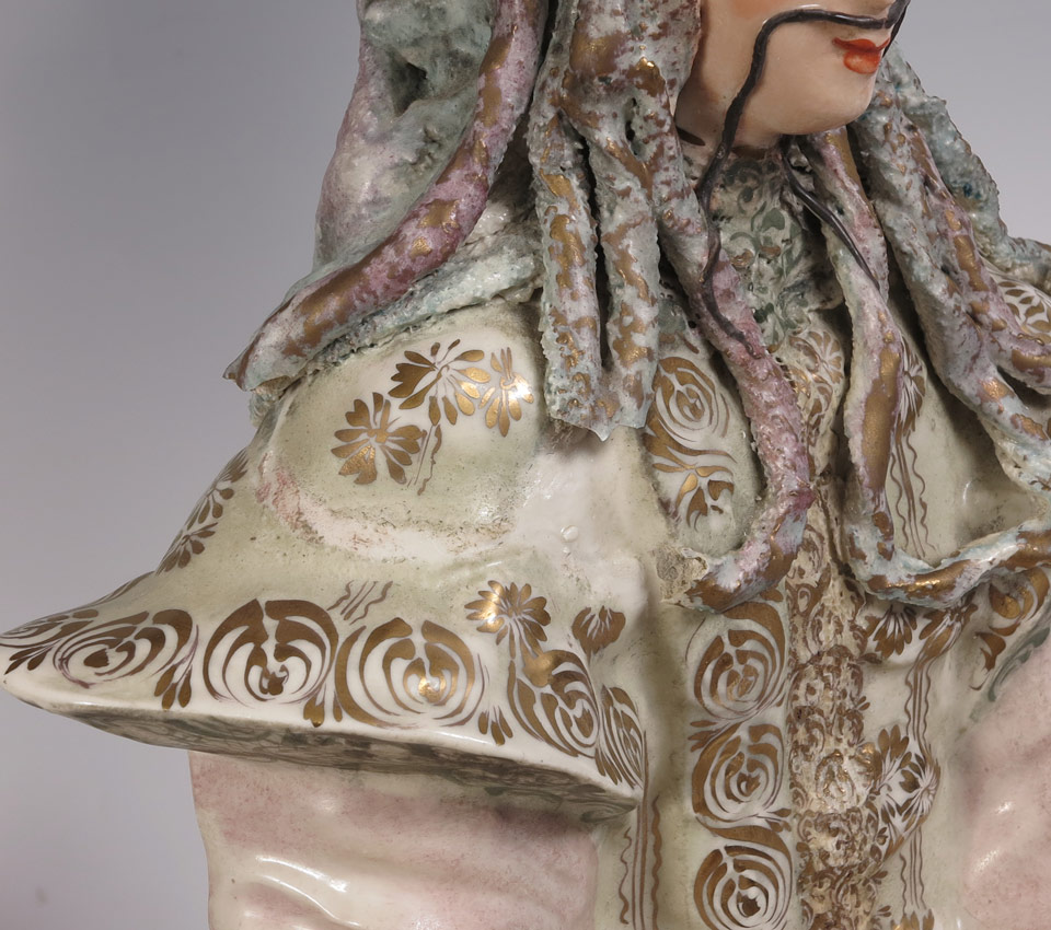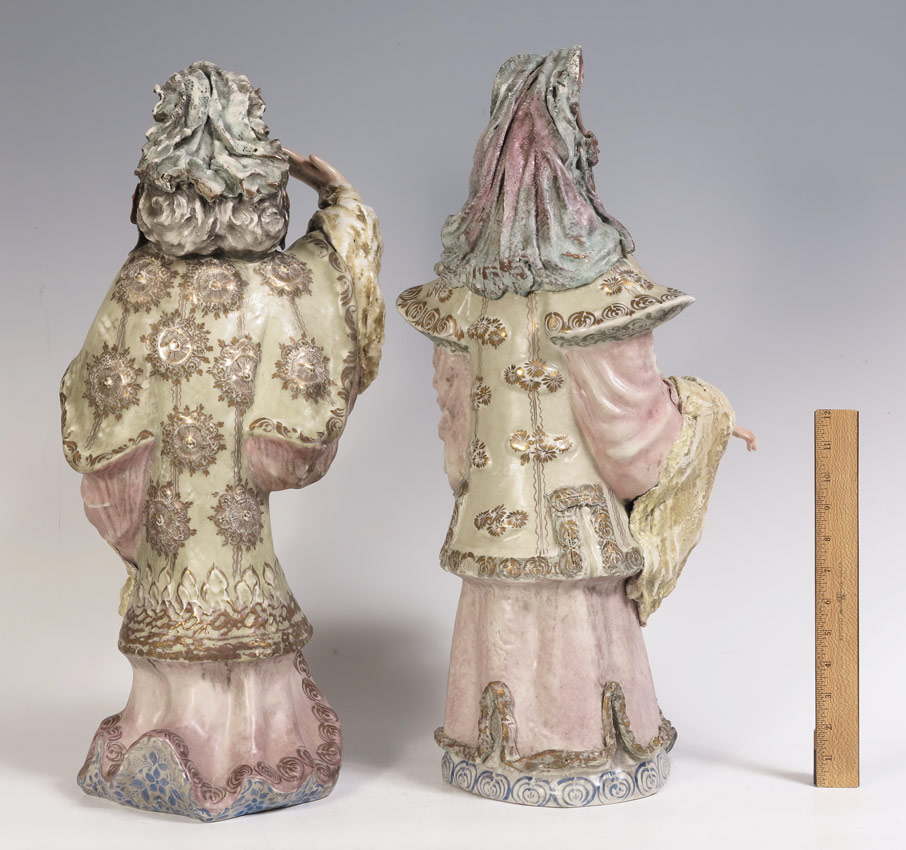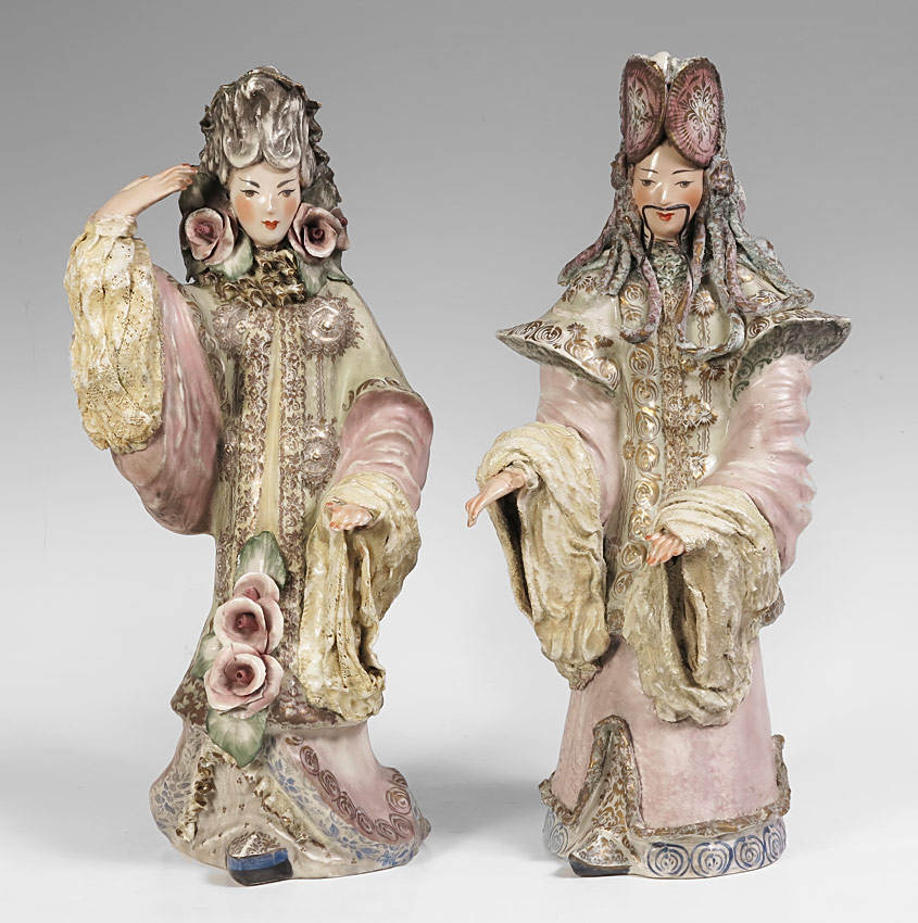 PAIR CORDEY PORCELAIN CHINESE EMPEROR & EMPRESS FIGURES: Larger of the 2 measures 24'' h.