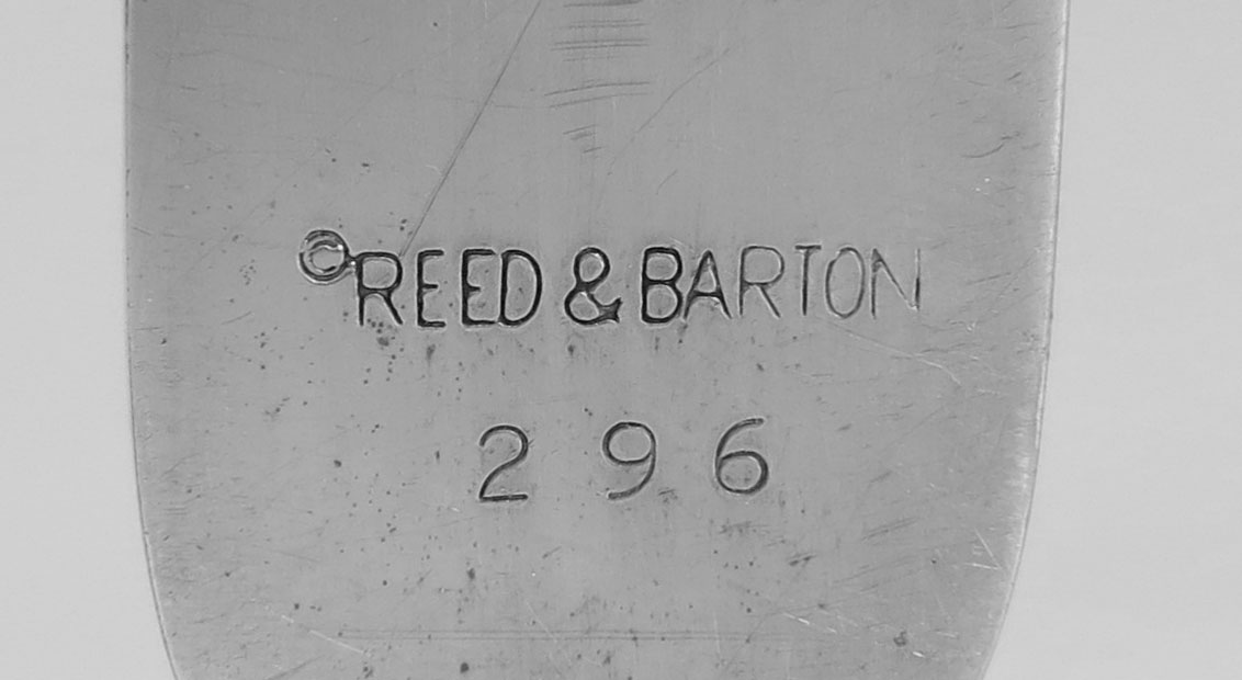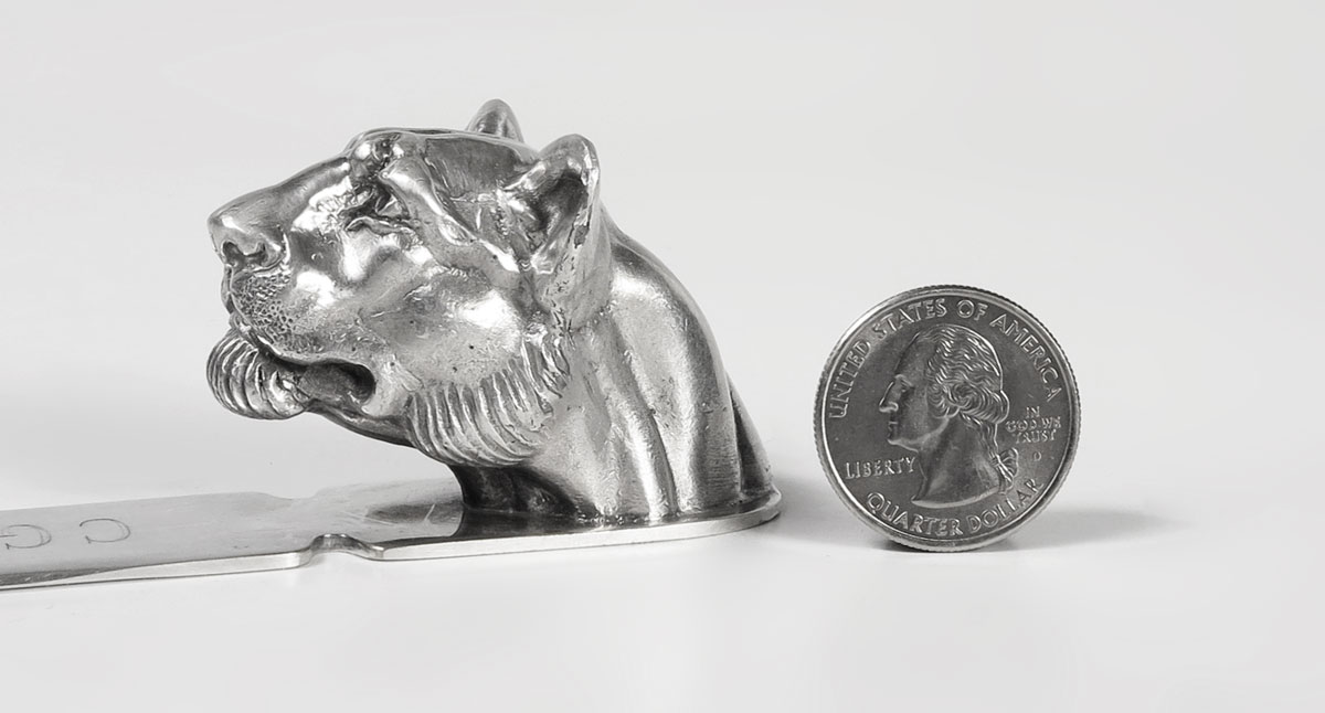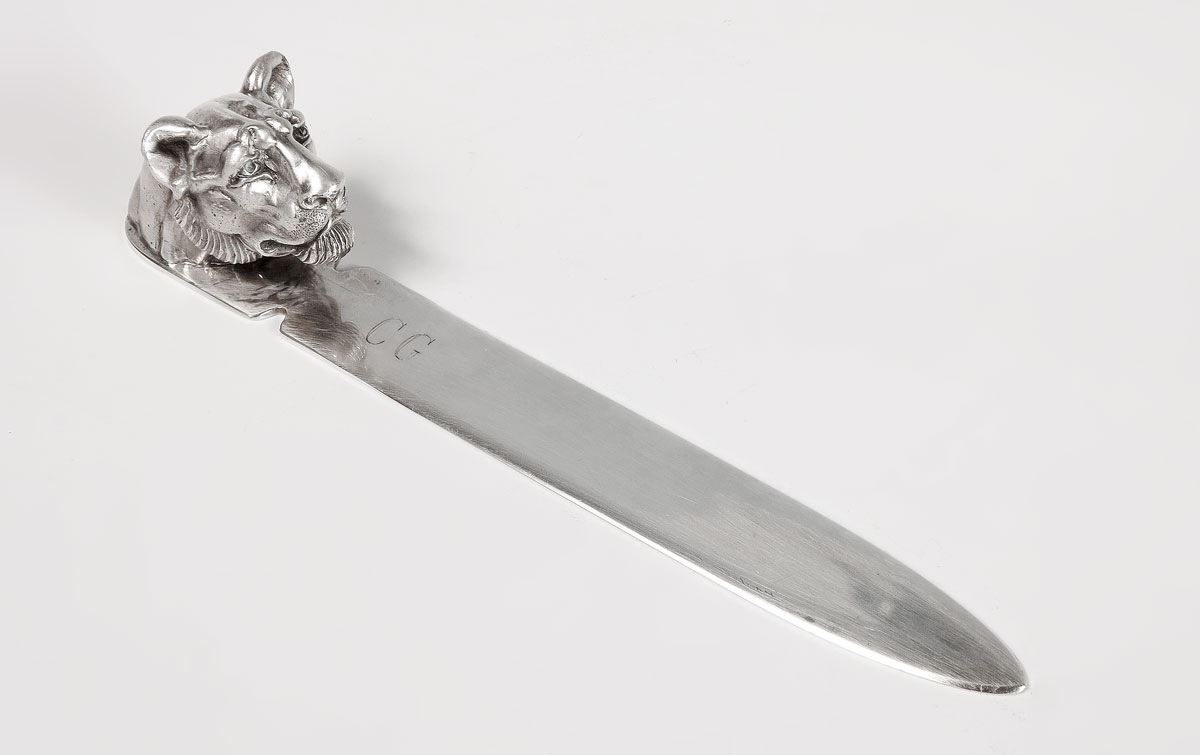 REED & BARTON LION HEAD LETTER OPENER: Lion head finial, marked Reed & Barton, 296. Monogrammed CG, 8'' l. x 1 1/2''.