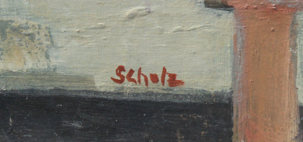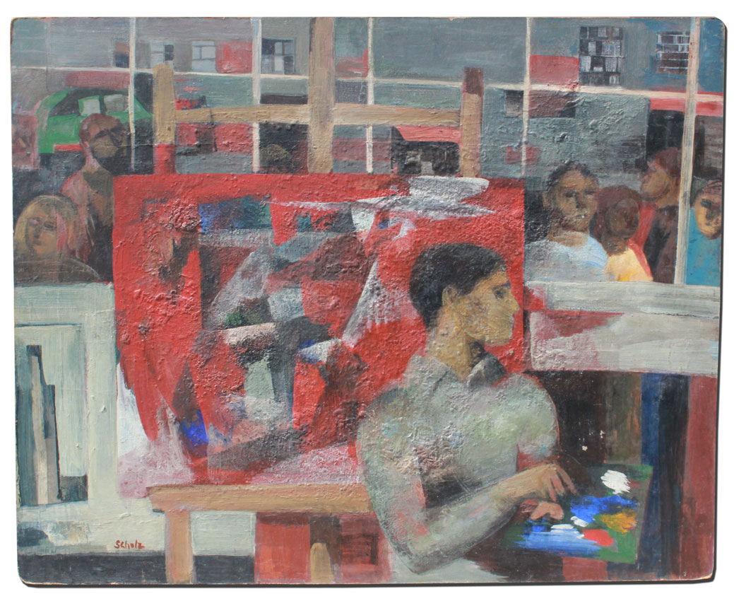 SCHOLZ, Erik, (Hungarian, 1926-1995): The Artist in his Studio, Oil/Masonite, 31 1/2'' x 39 1/4'', unframed, signed lower left.