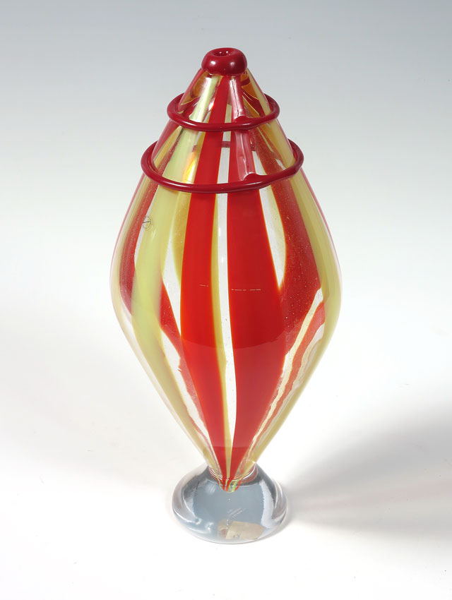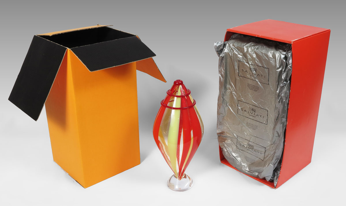 BERIT JOHANSSON FOR SALVIATI MURANO GLASS SCULPTURE: With original box & packaging. Signed Salviati and B. Johansson 1991, also Salviati label. Approx. 16.5'' tall x 7.5''.