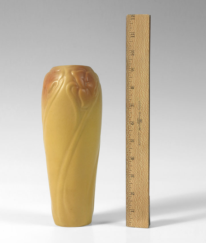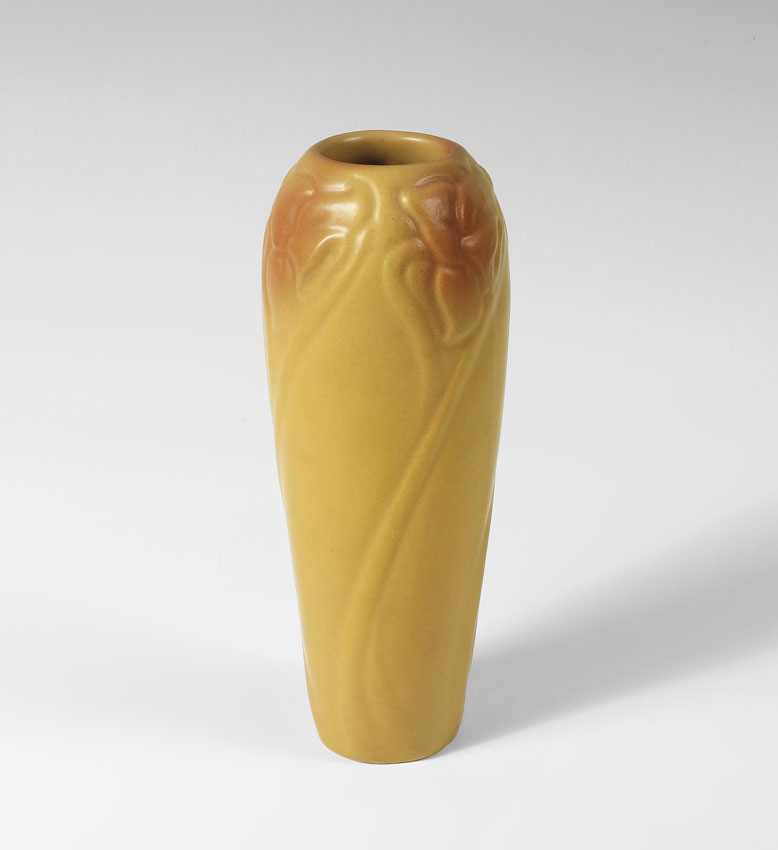 VAN BRIGGLE POTTERY DAFFODIL VASE: Mustard color, Ca 1908-1911, 9 1/8'' h.