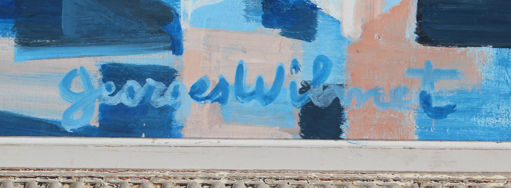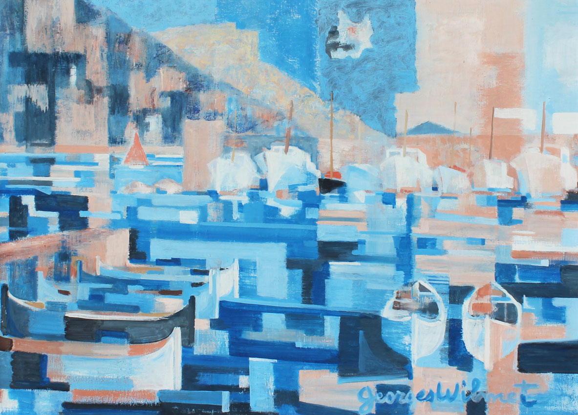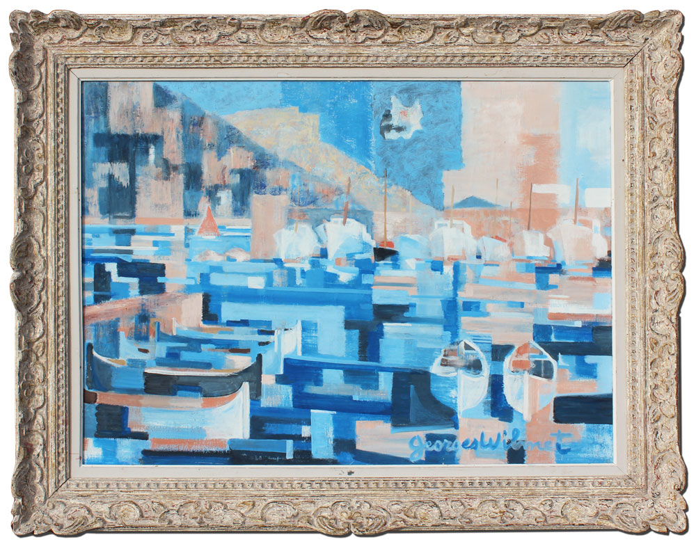 WILMET, Georges, (American, 20th Century): Cubist Dockside Harbor Scene, Oil/Canvas, 28 1/2'' x 39 1/4'', signed lower right, encased in carved and painted gesso frame with minor wear, 37 1/2'' x 48 1/2'', this painting descended in the artist's family.