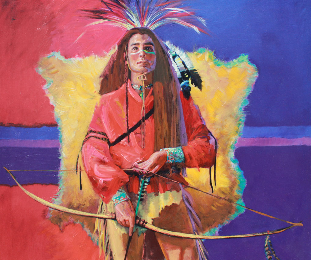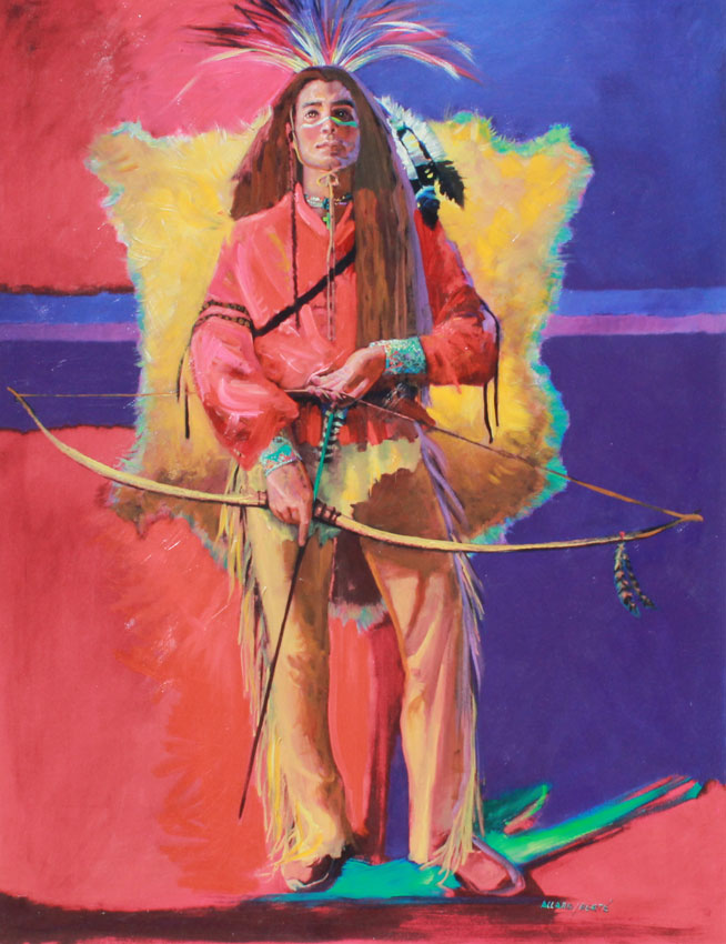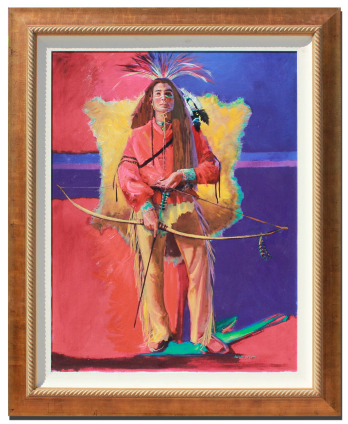 BERTE, June, (American, 20th Century): Young Indian Warrior, Oil/Canvas, 40'' x 32'', signed lower right, encased in custom gilded frame, 50 1/2'' x 41 1/2''.