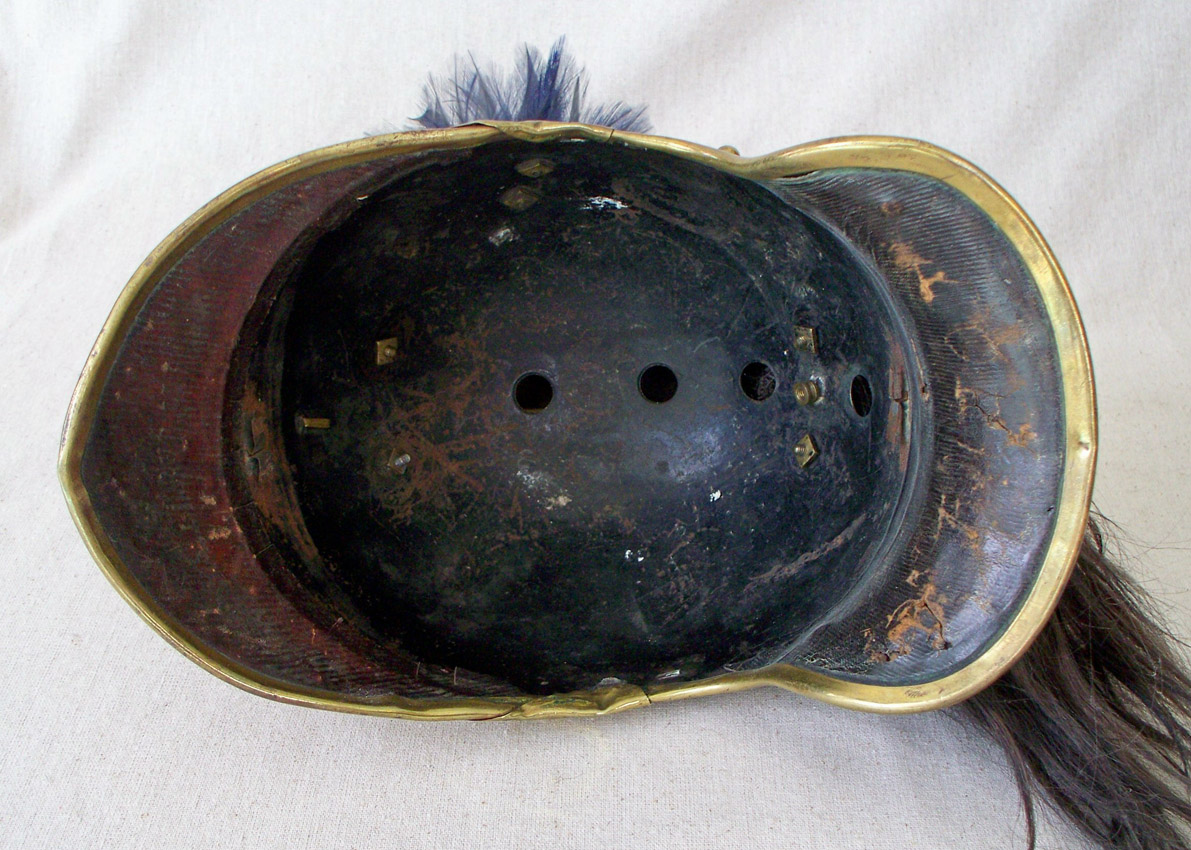 CONDITION: Scale chinstraps and cockades are not present. Discoloration and dings of metal as shown in photos. Overall condition nice for a battlefield souvenir. No liner.