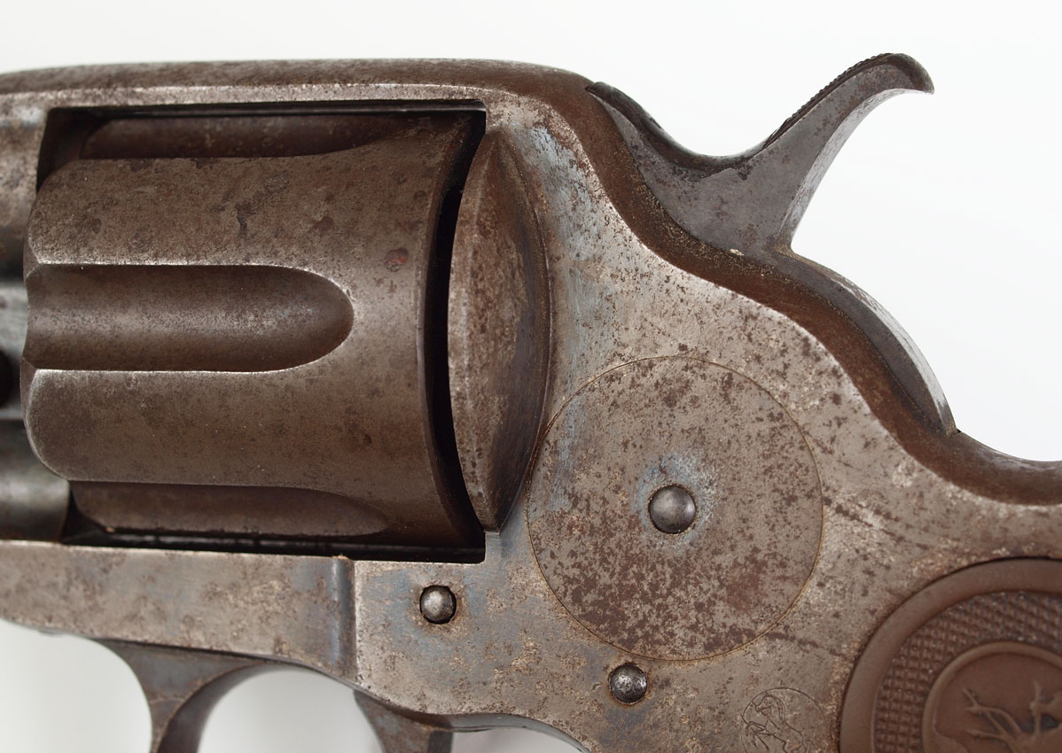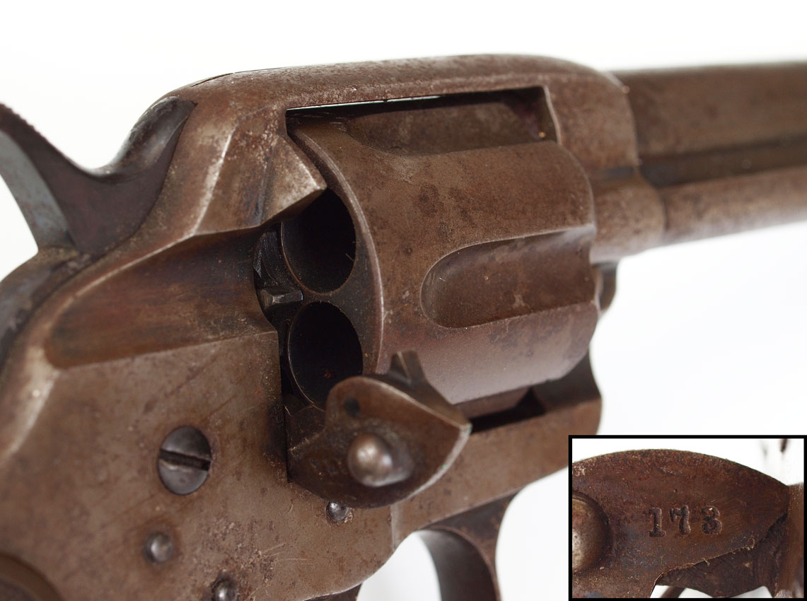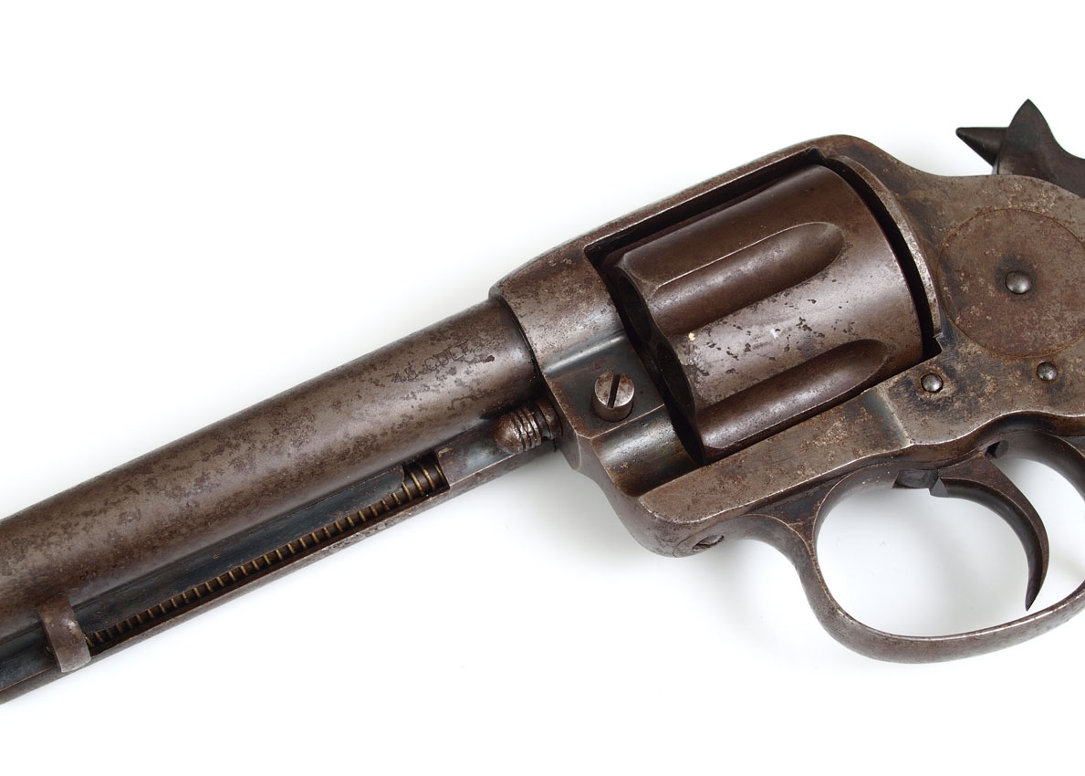 CONDITION: Areas of surface rust and peppering, damage to both grips. We do not condone the attempt to fire any antique firearm in any condition.