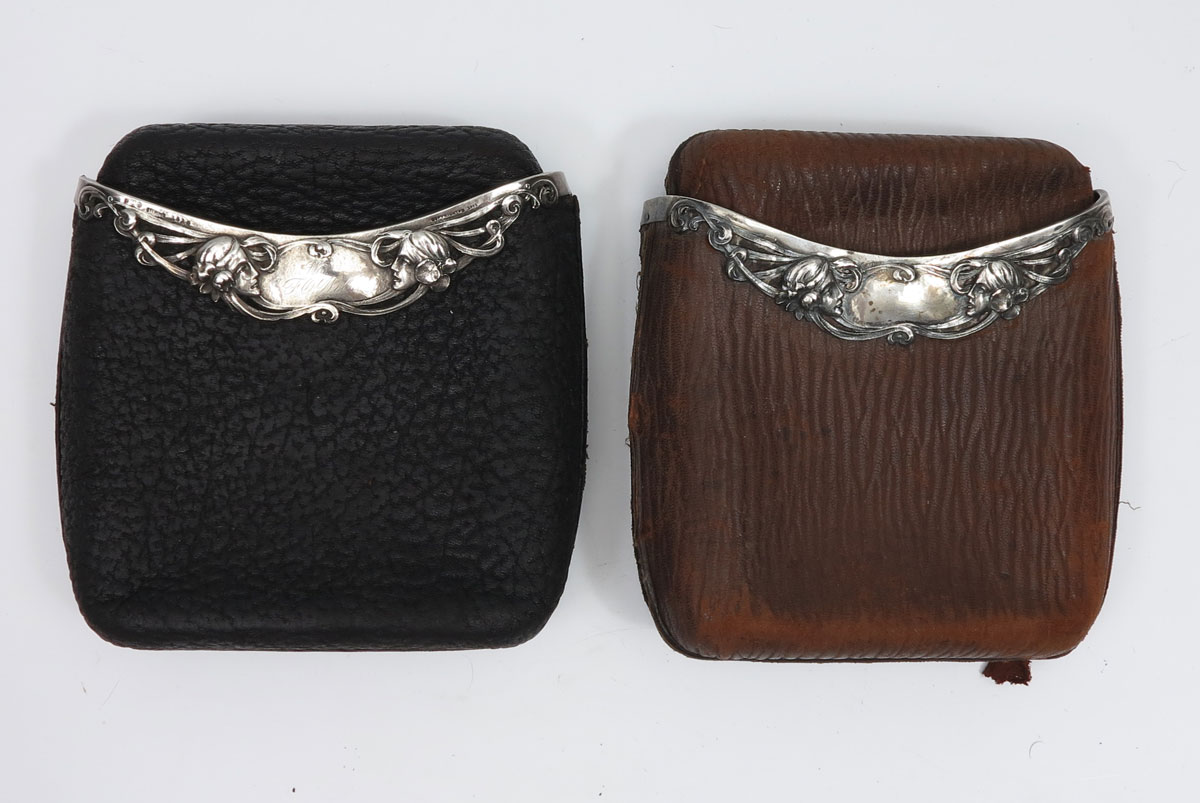 ART NOUVEAU STERLING SILVER MOUNTED CIGAR CASES: 2 sterling trimmed leather cigar cases, trim by Gorham.